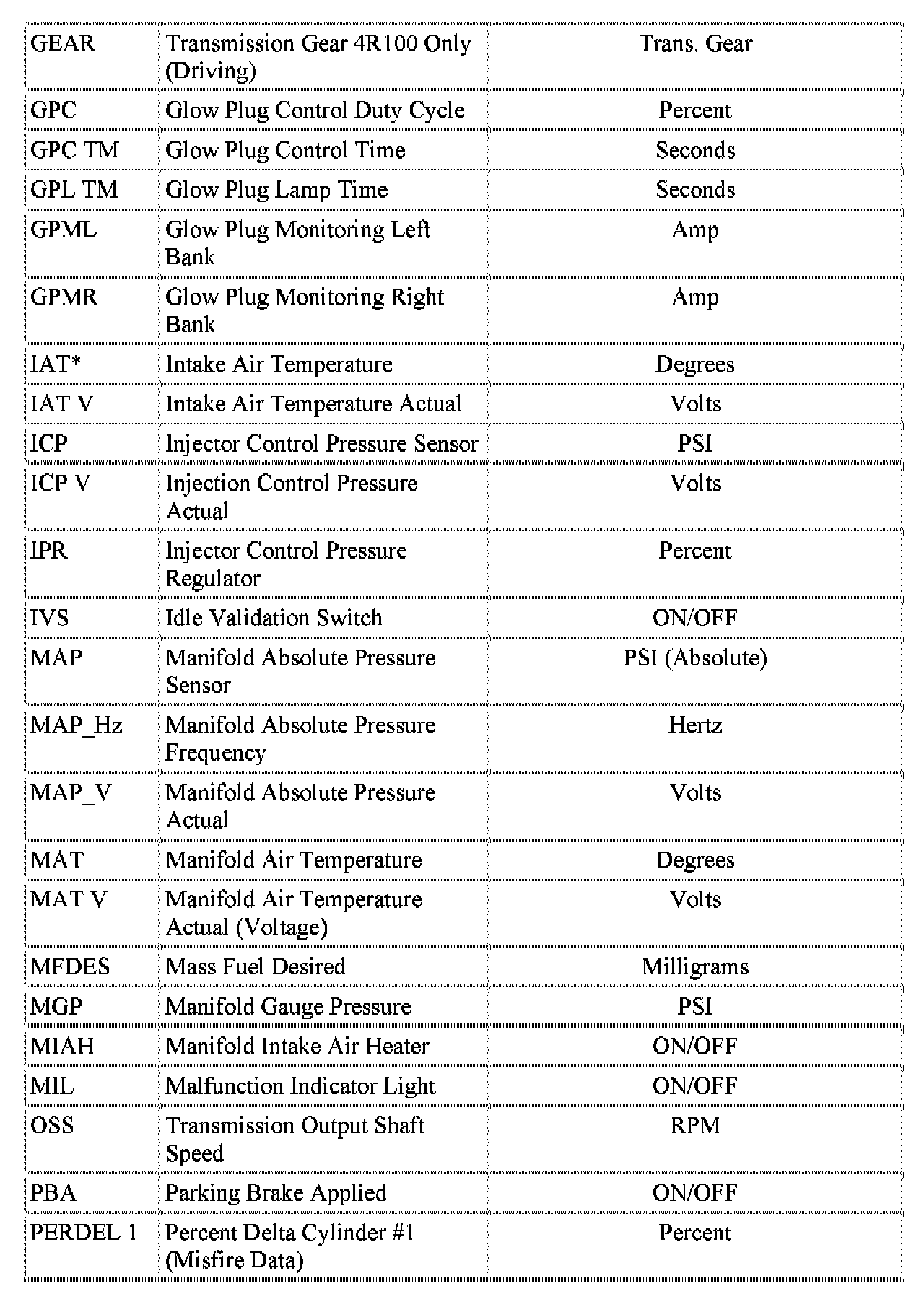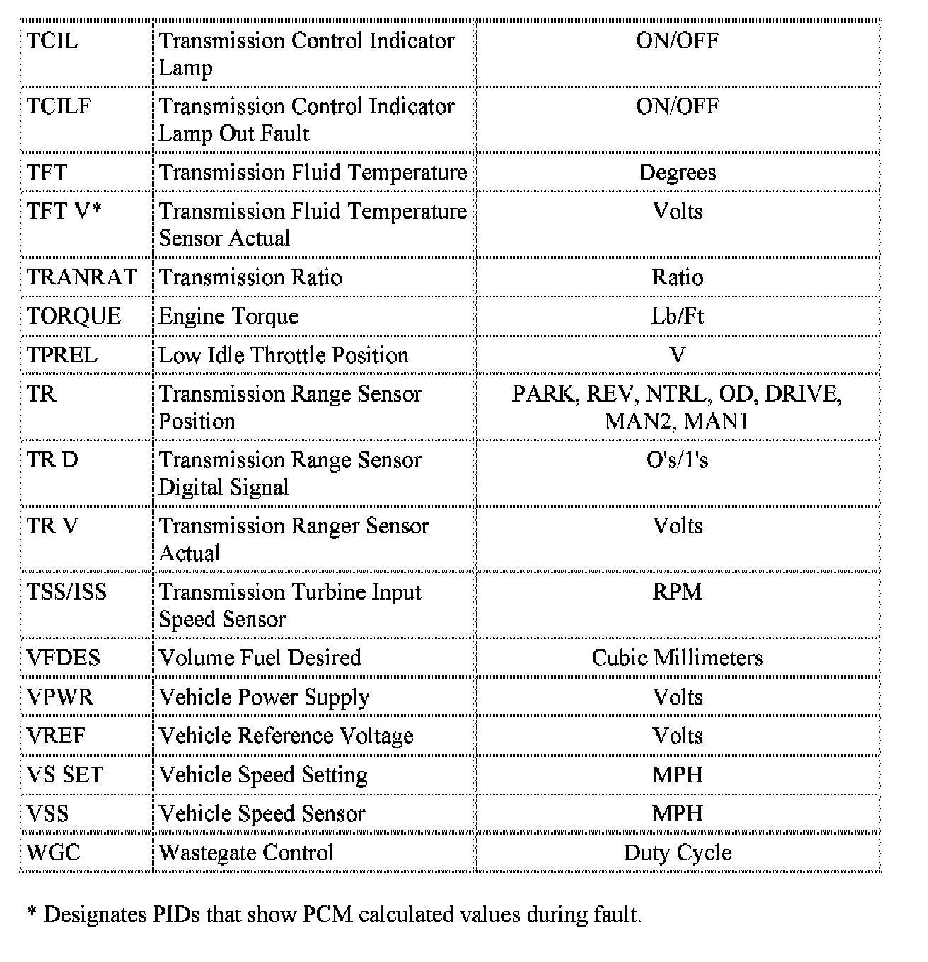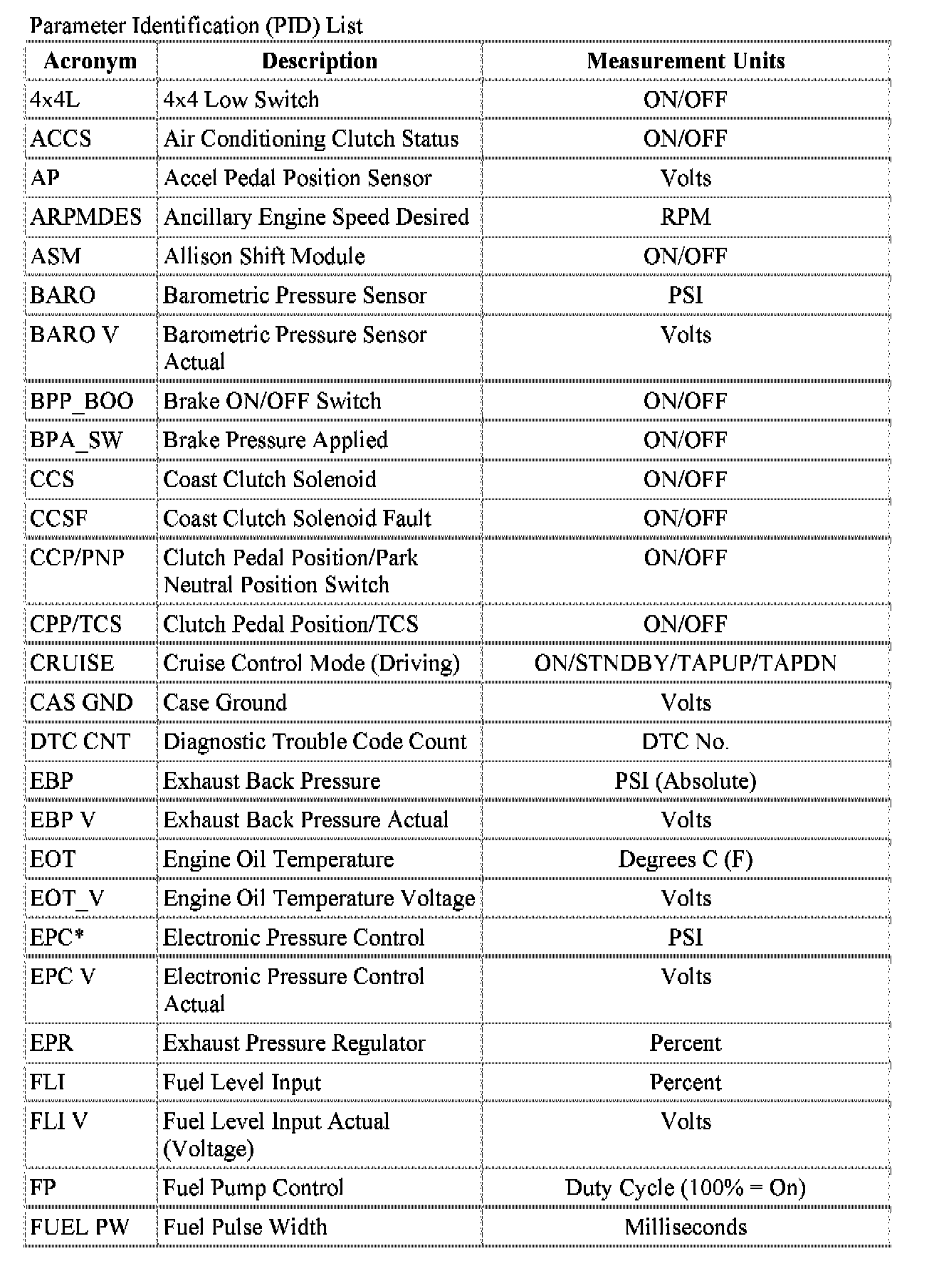 Parameter Identification (PID) List: