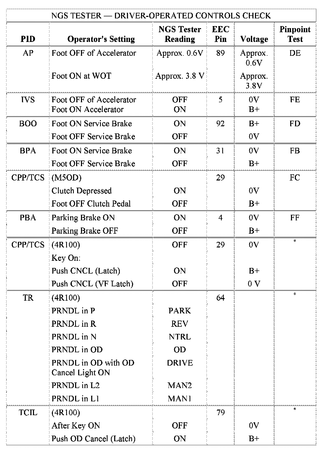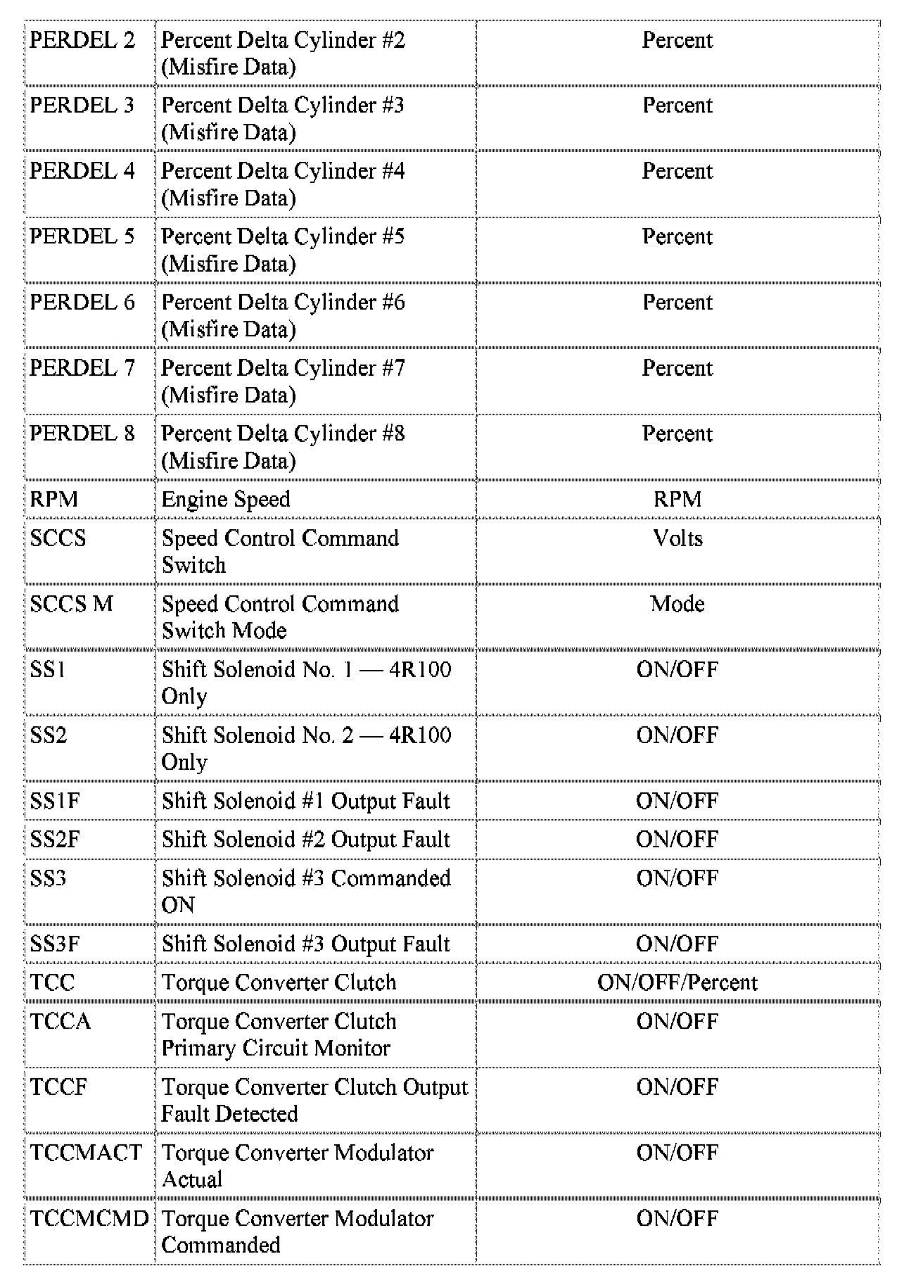 Normal Scan Data Values - Includes PIDs