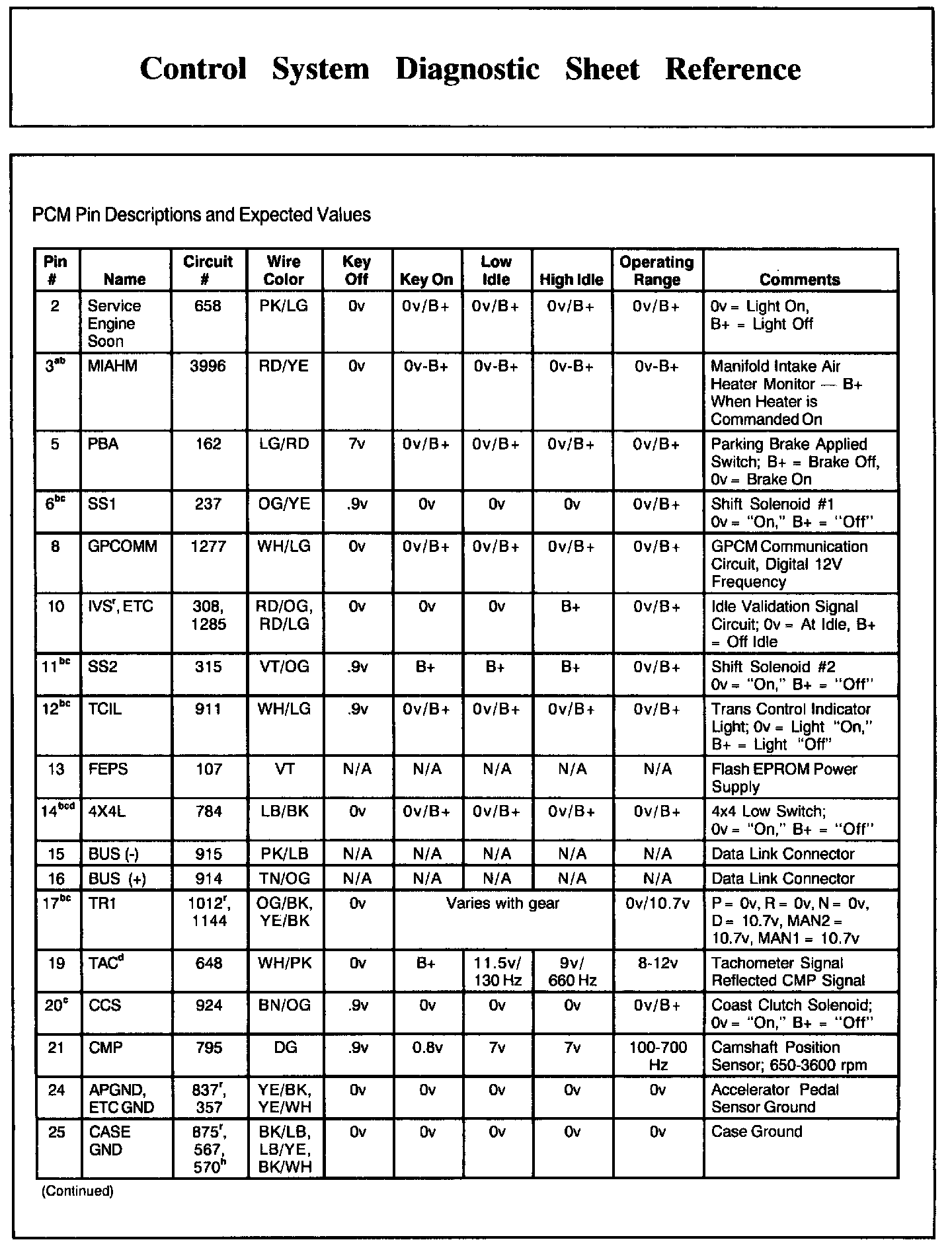 PCM Pin Descriptions And Expected Values, Part 3: