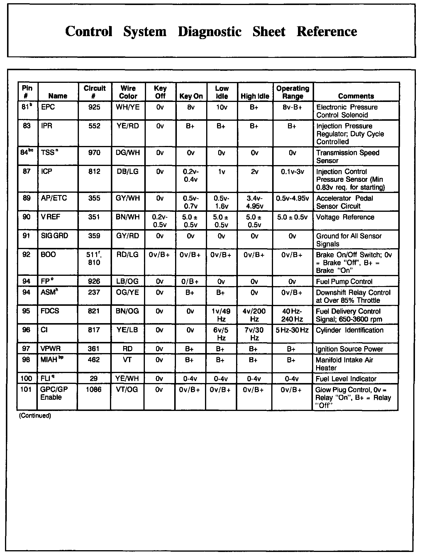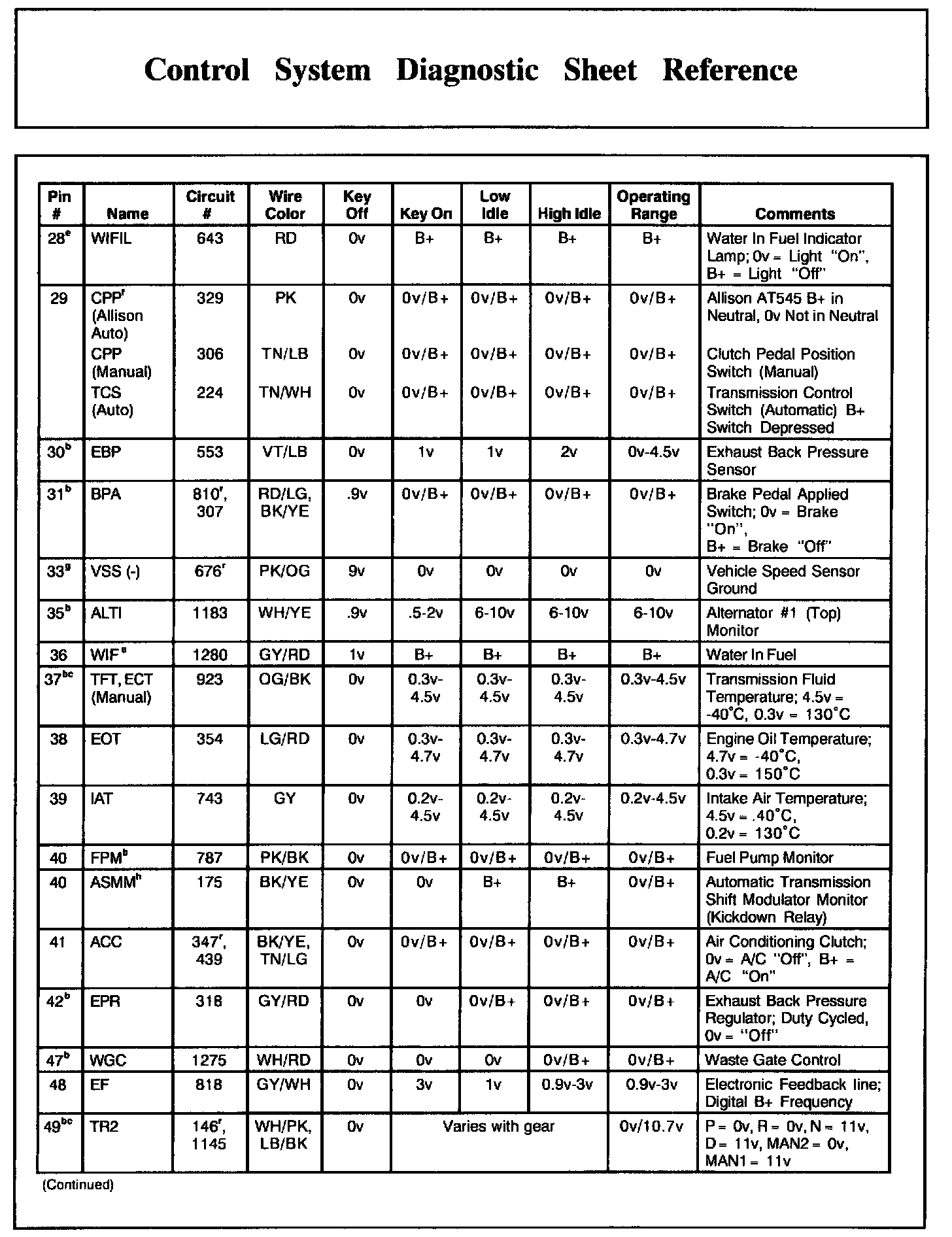 PCM Pin Descriptions And Expected Values, Part 4: