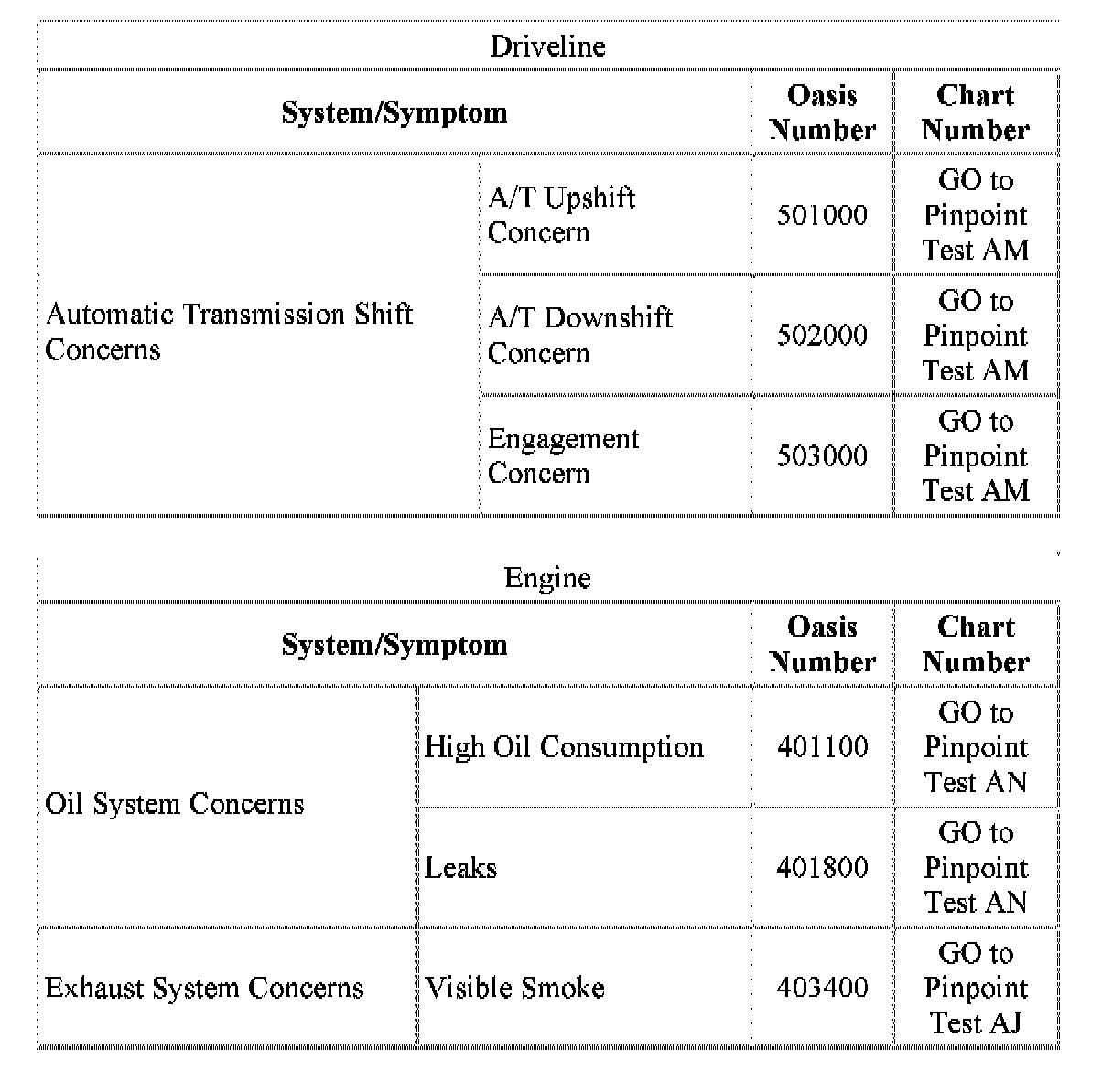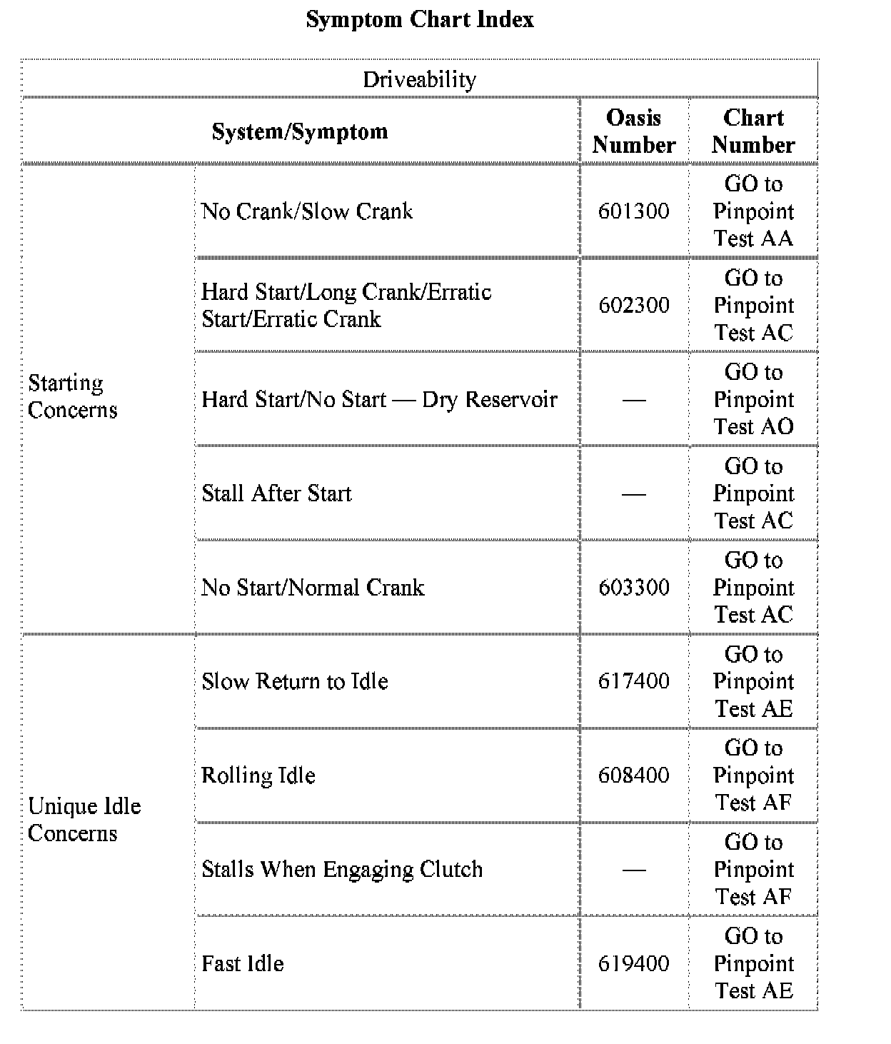 Symptom Chart Index