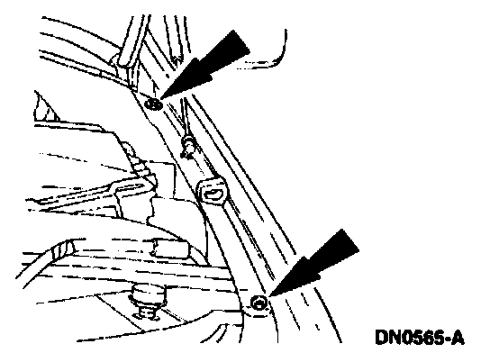 8. Remove the fender-to-radiator grille opening support retaining bolts.