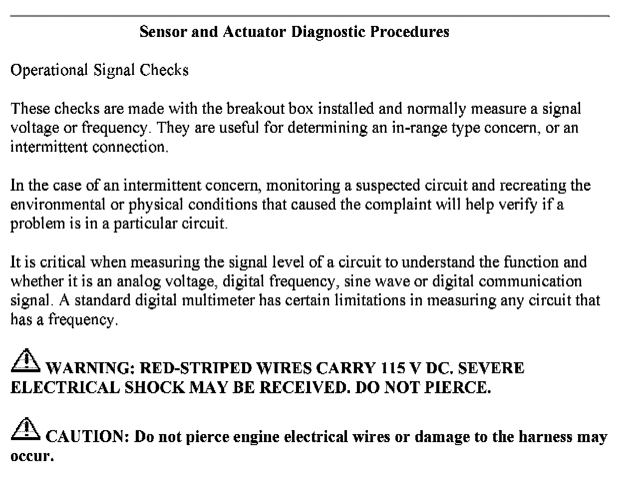 Sensor and Actuator Diagnostic Procedures