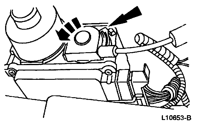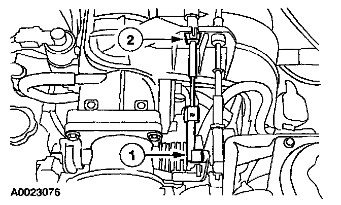 2 Depress the tabs and separate the speed control cable from the intake manifold.