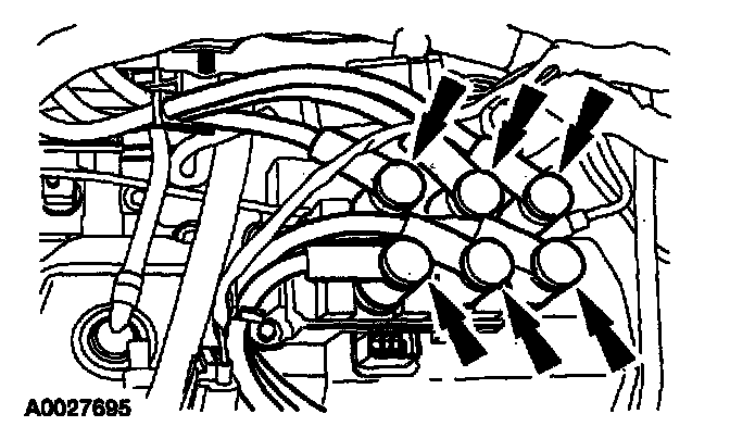 ^ Spark plug wires must be connected to the correct ignition coil terminal. Mark spark plug wire locations before removing them.