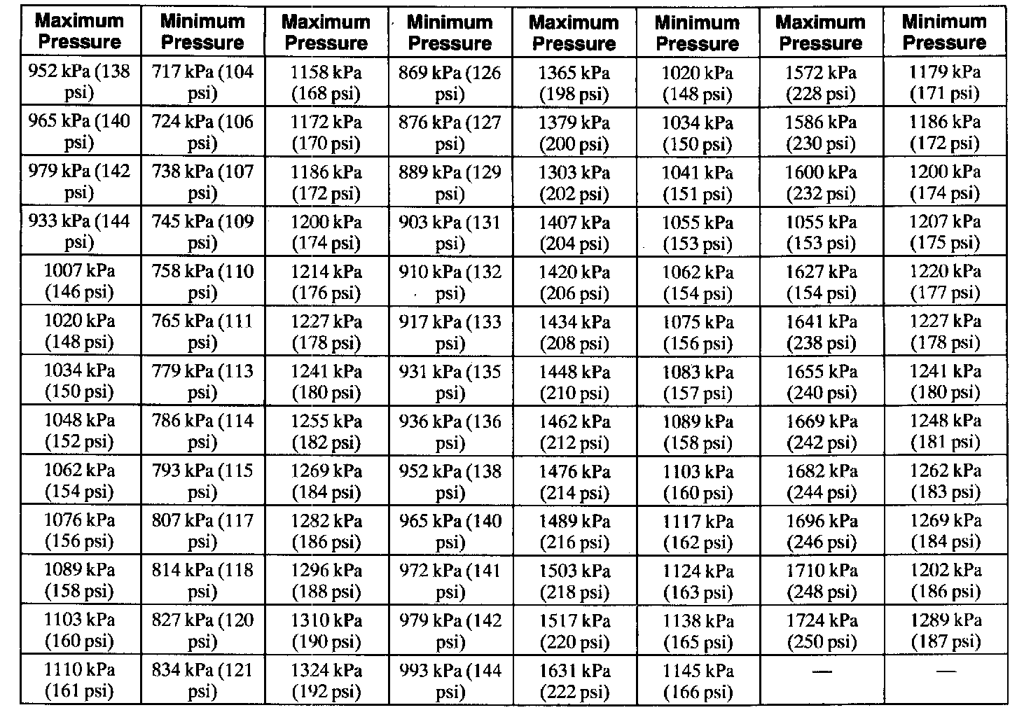 Compression Pressure Limit Chart (Part 2 Of 2):