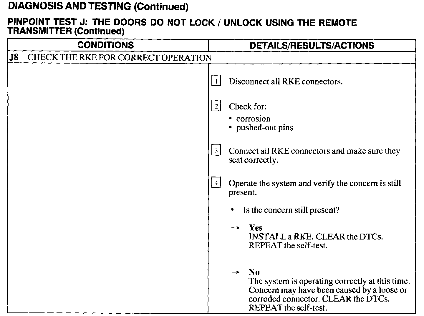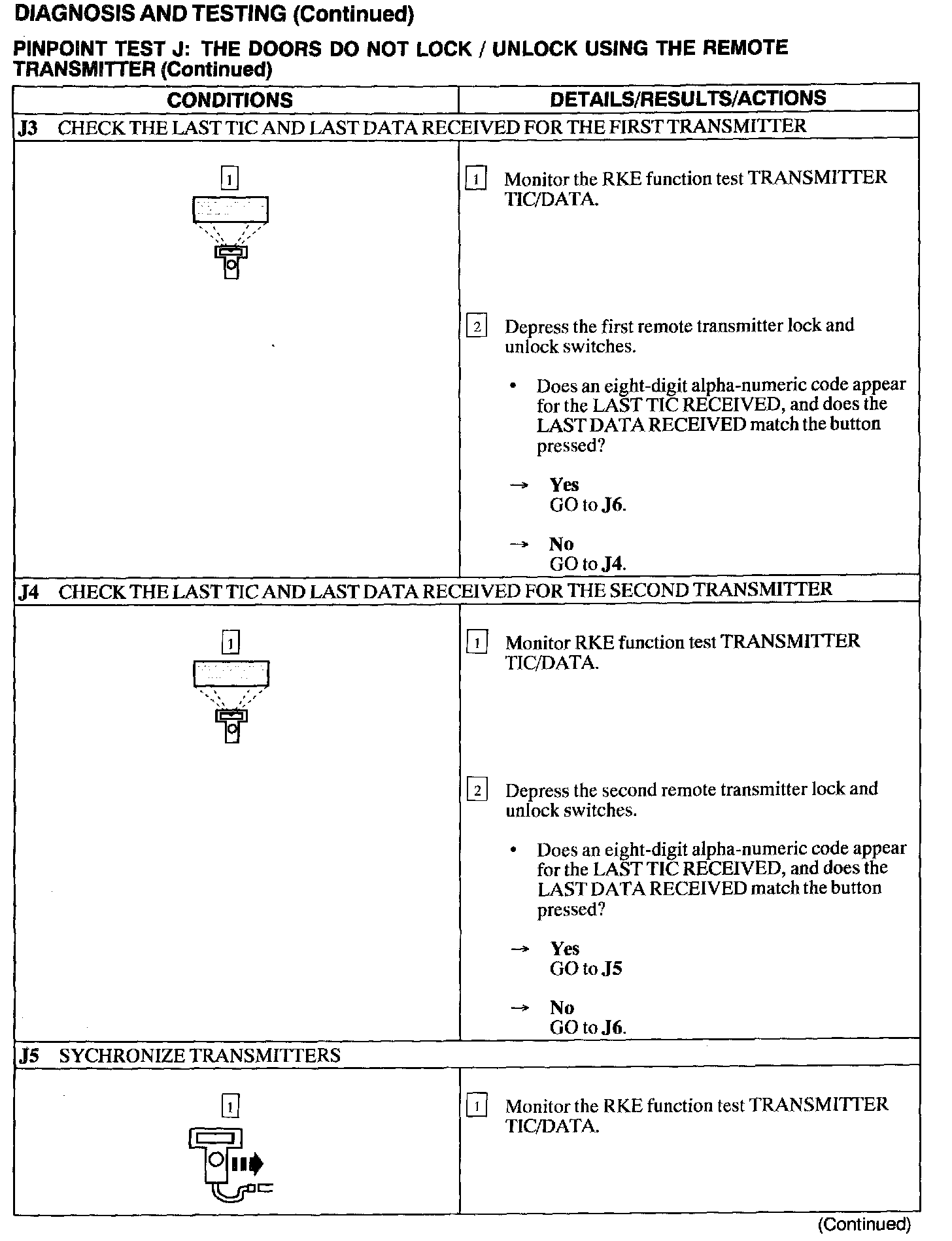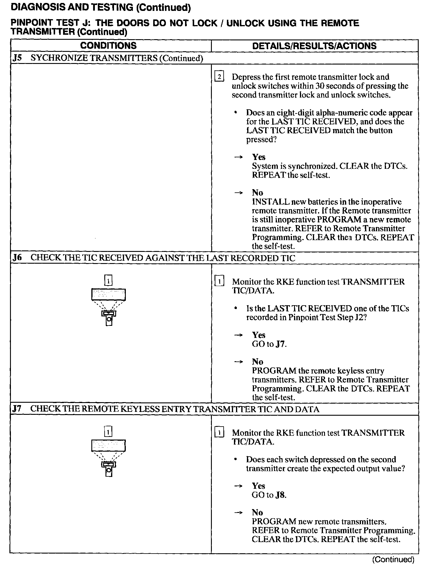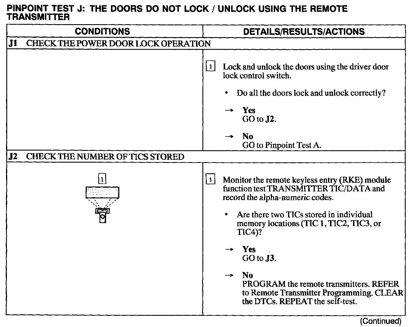 Test J: Doors Do Not Lock/Unlock Using The Remote Transmitter