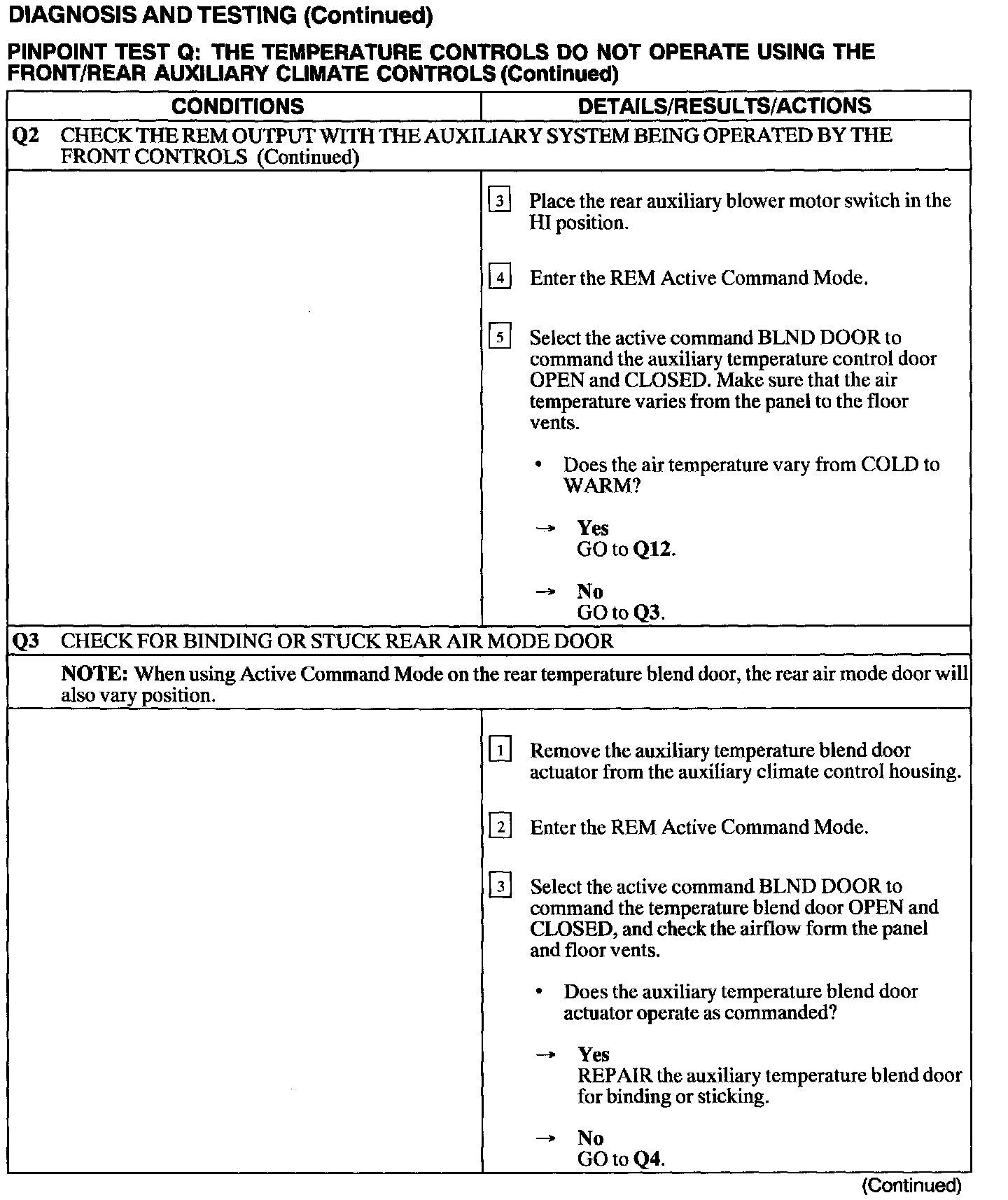 Test Q: Temperature Controls Do Not Operate Using Aux Controls