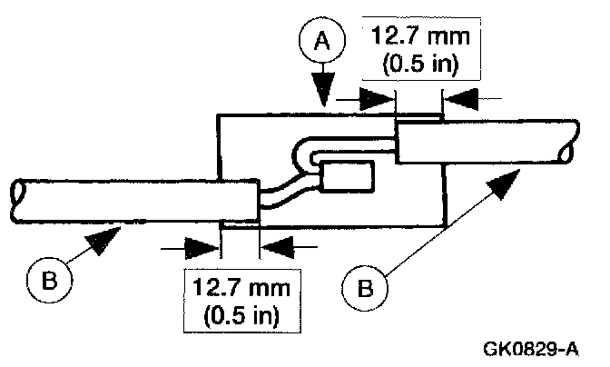 5. Position the (A) heat shrink tube over the (B) wire repair.