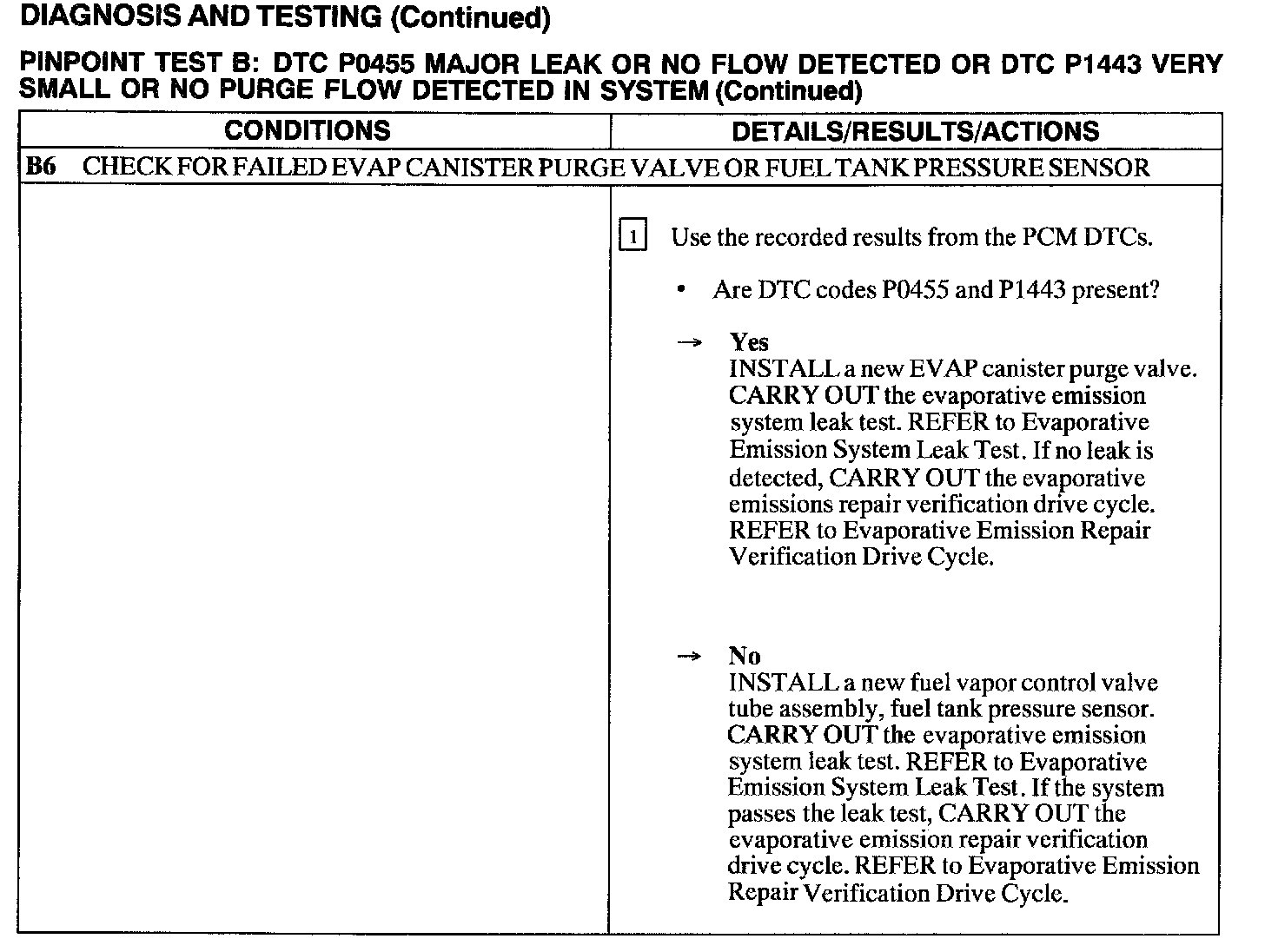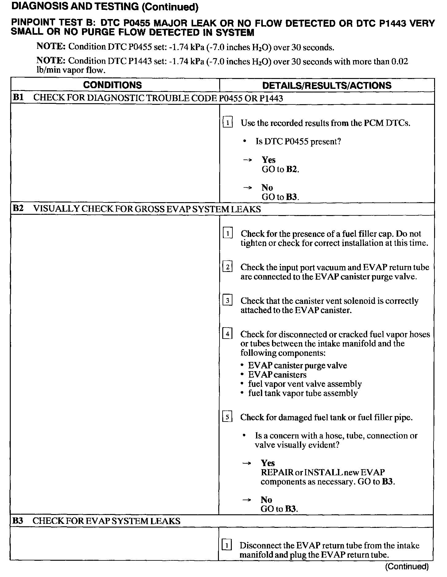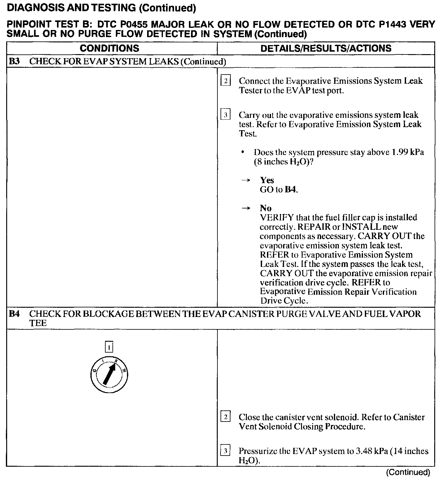 Test B: DTC P0455/P1443 No Flow Detected In System