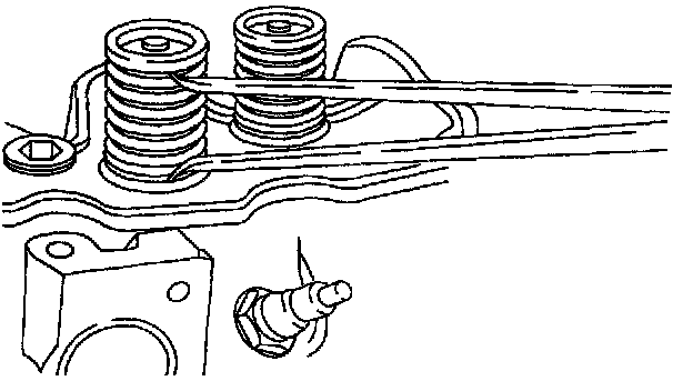 ^ Turn the valve spring and observe the space between the top of the valve spring and the square. Install a new valve spring if out of square.
