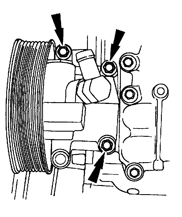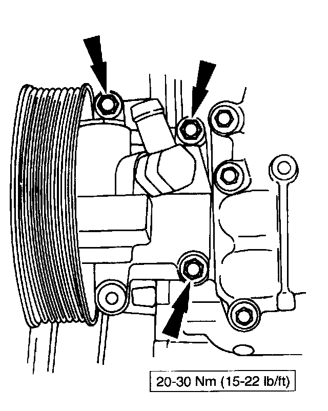 9. NOTE: The front lower hole in the power steering pump is not used.