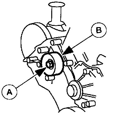 13. Remove the (A) bolt and the (B) belt idler pulley.