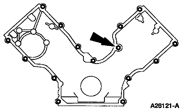 ^ Remove the engine front cover gasket and clean and inspect the mating surfaces.