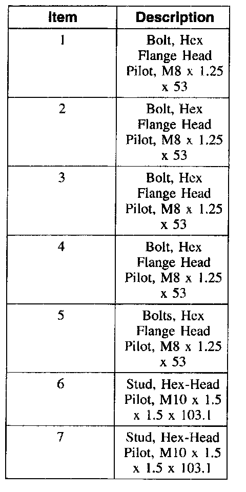 7. Loosely install the bolts then tighten the bolts in the two stages, in the sequence shown.