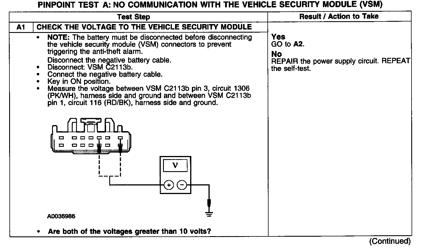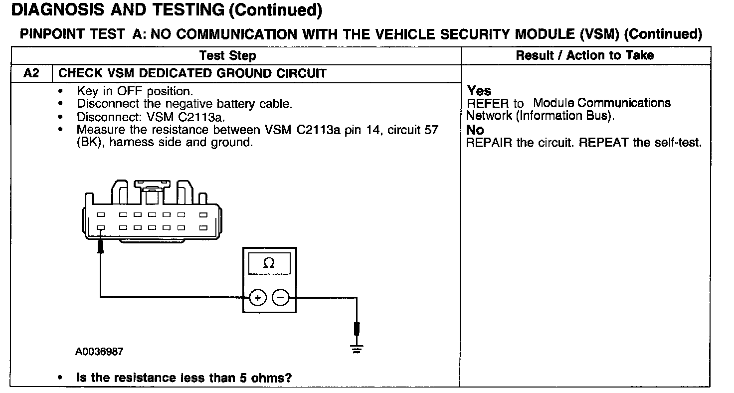 PINPOINT TEST A: NO COMMUNICATION WITH THE VEHICLE SECURITY MODULE (VSM)