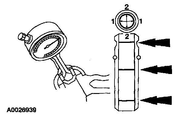 1. Measure the inner diameter of the valve guides in two directions where indicated.