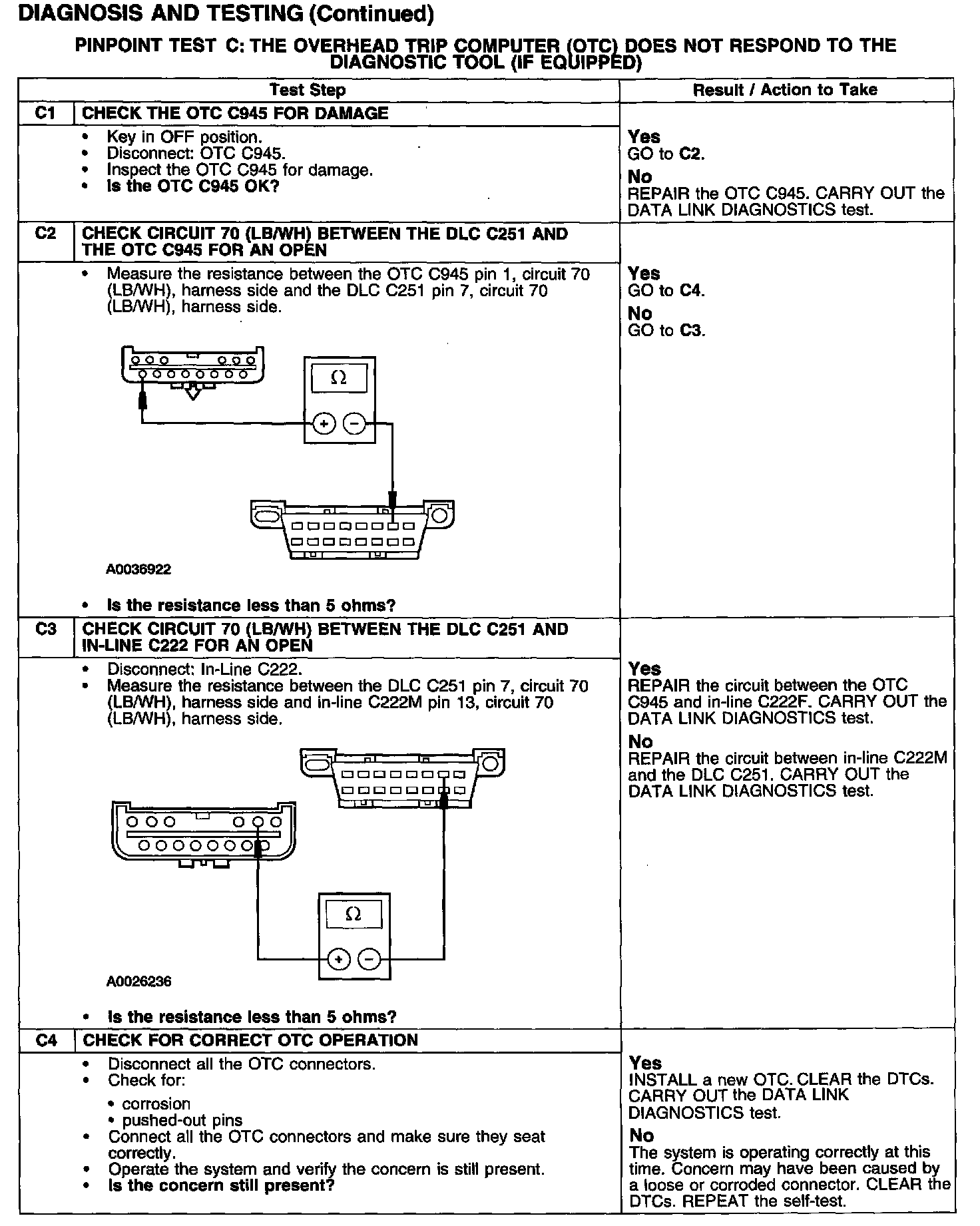 PINPOINT TEST C: THE OVERHEAD TRIP COMPUTER (OTC) DOES NOT RESPOND TO THE DIAGNOSTIC TOOL (IF EQUIPPED)