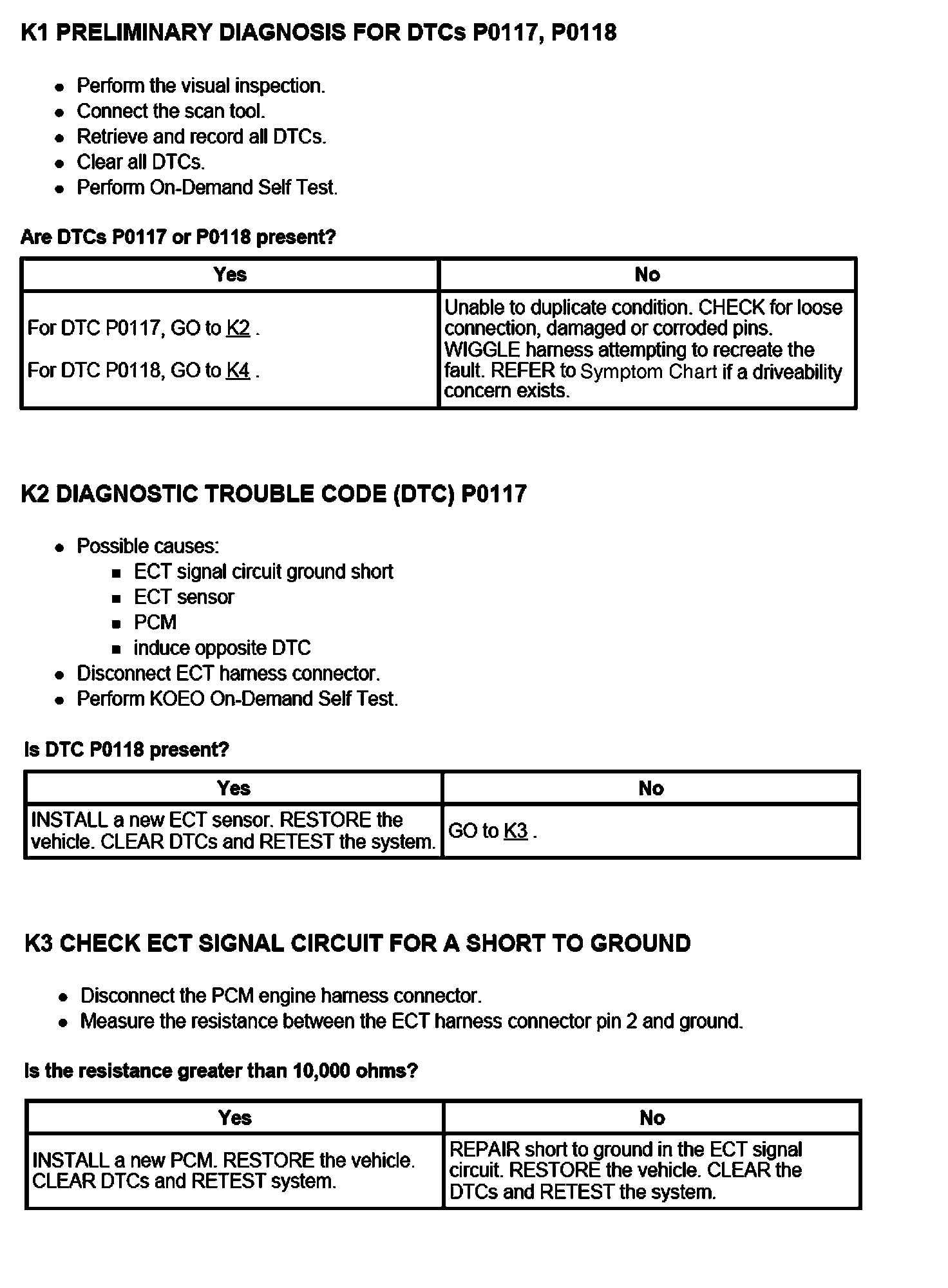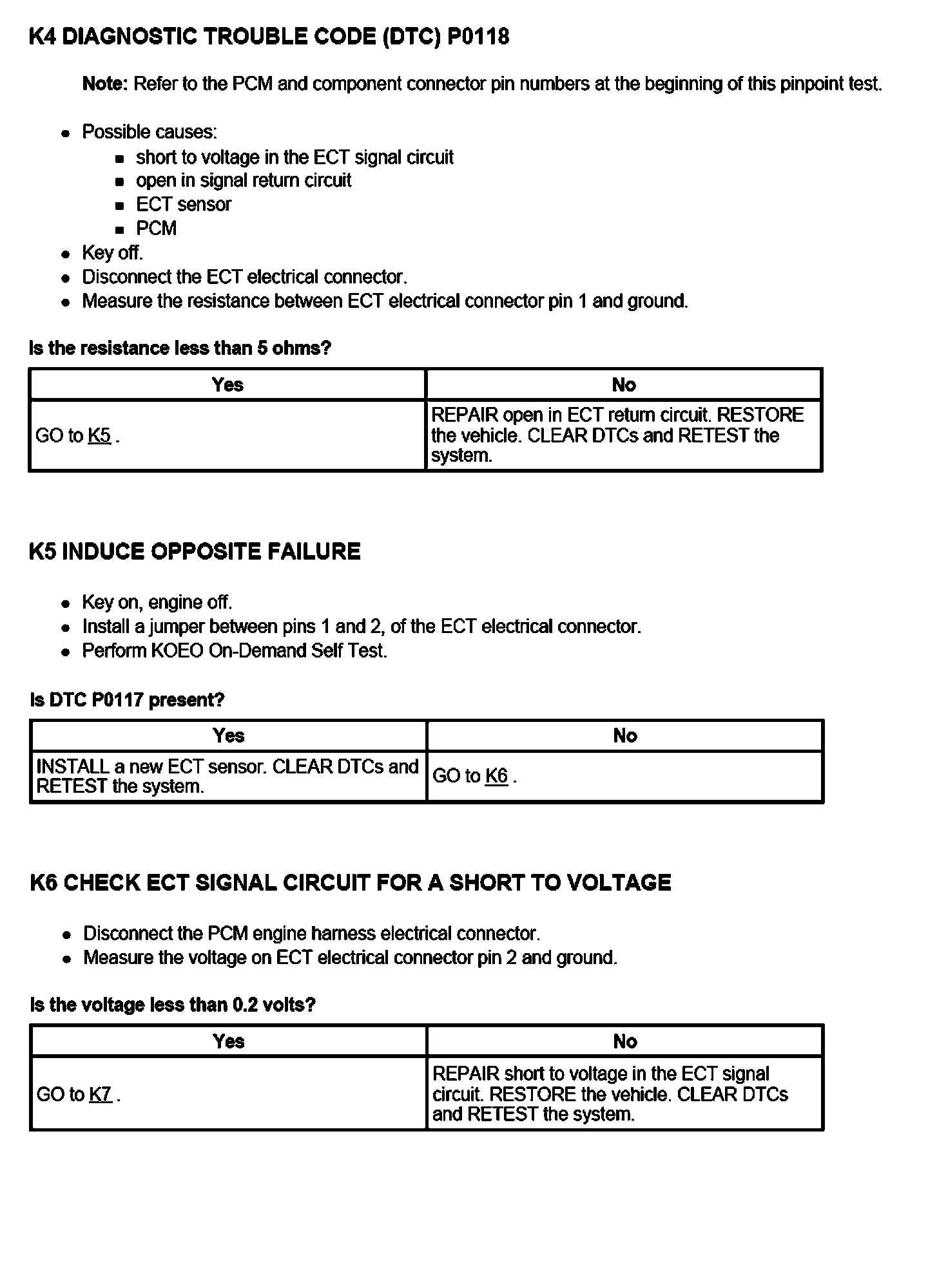 PINPOINT TEST K: ENGINE COOLANT TEMPERATURE (ECT) SENSOR