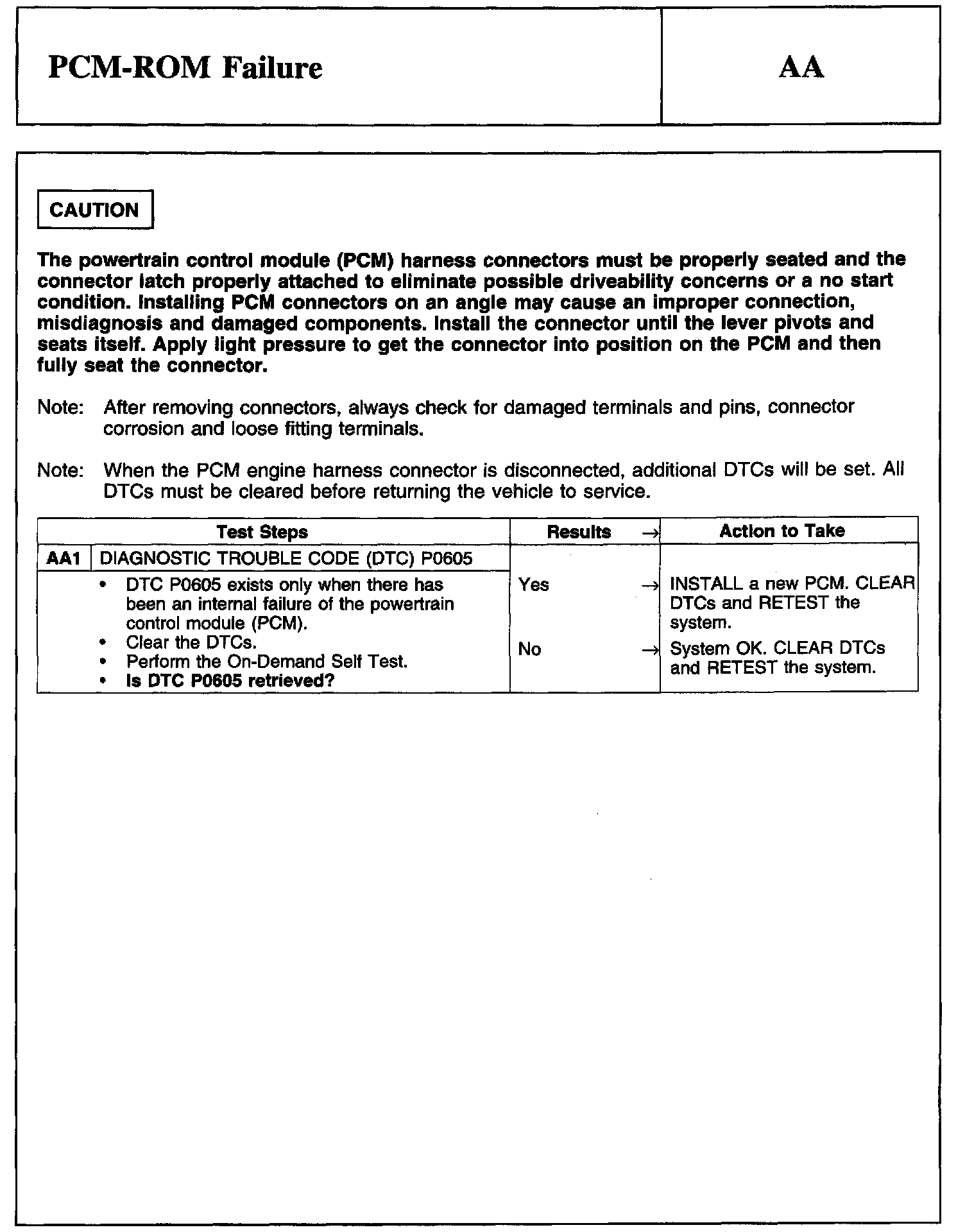 PINPOINT TEST AA: PCM-ROM FAILURE