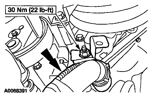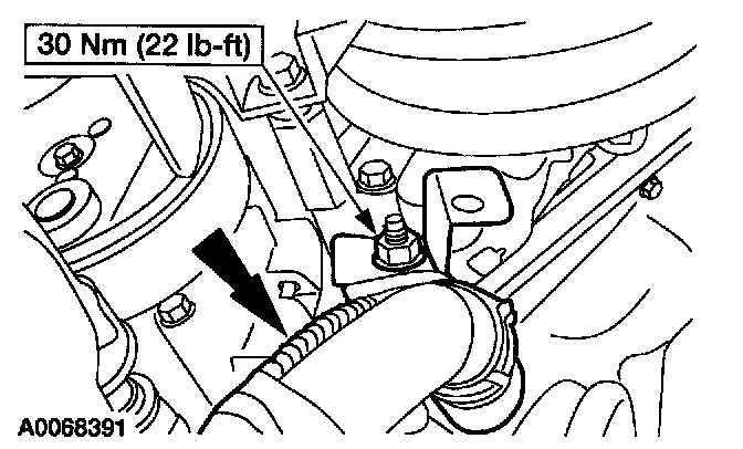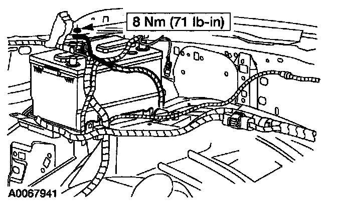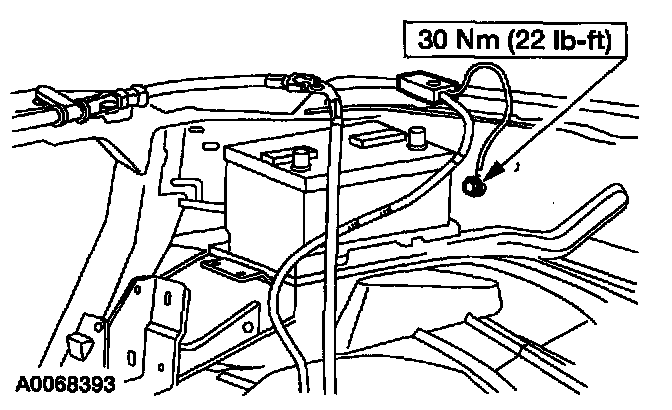 NOTE: Position the LH splash shield aside for access to battery negative cable bolt.