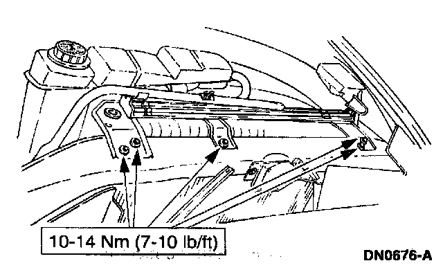 5. Remove the pin-type retainers from along the top of the radiator support bracket and remove the nuts.
