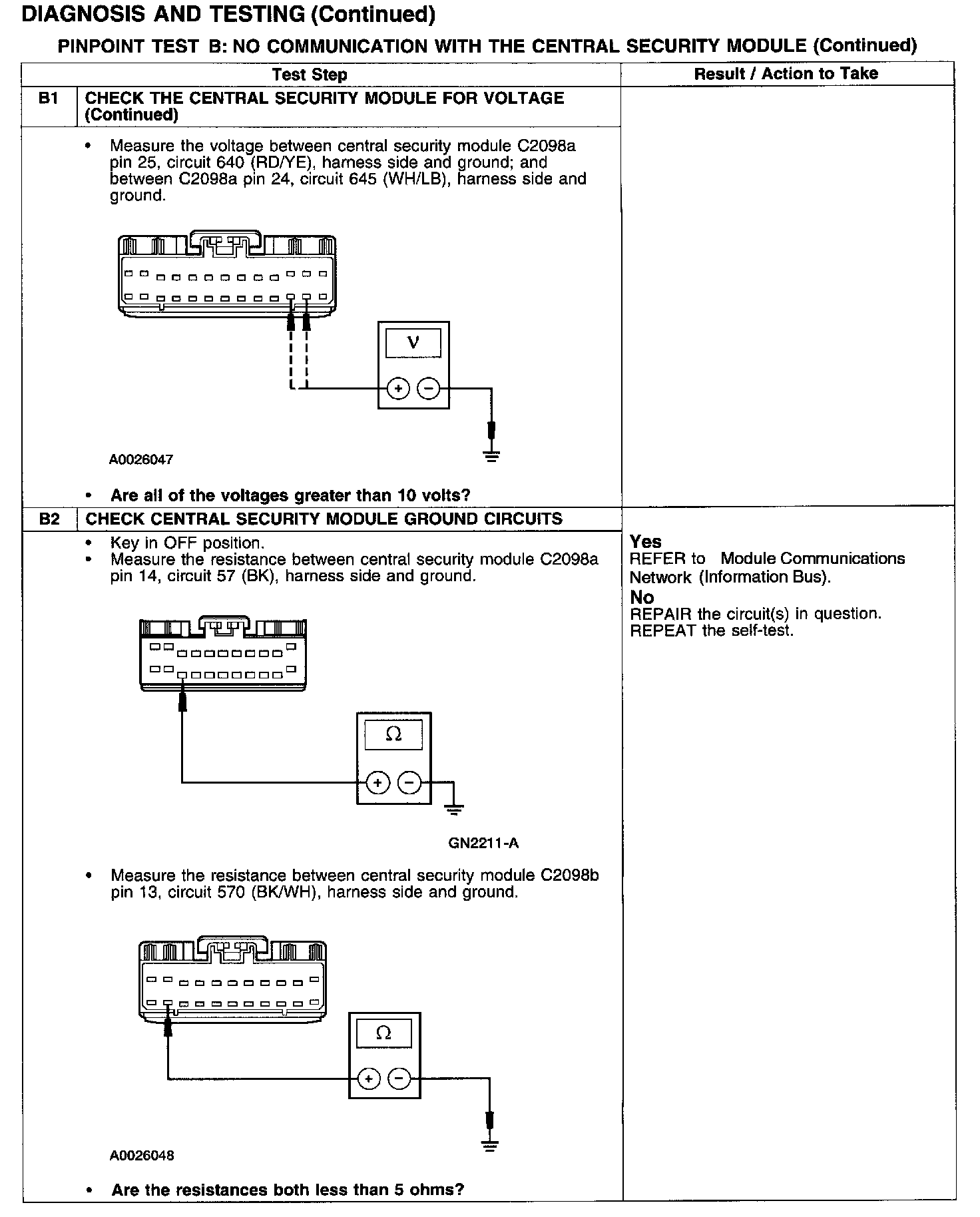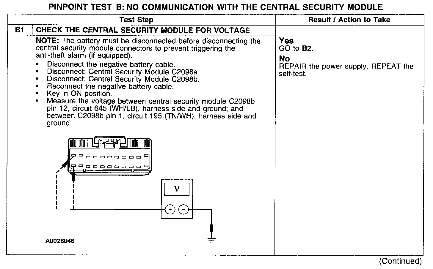 PINPOINT TEST B: NO COMMUNICATION WITH THE CENTRAL SECURITY MODULE