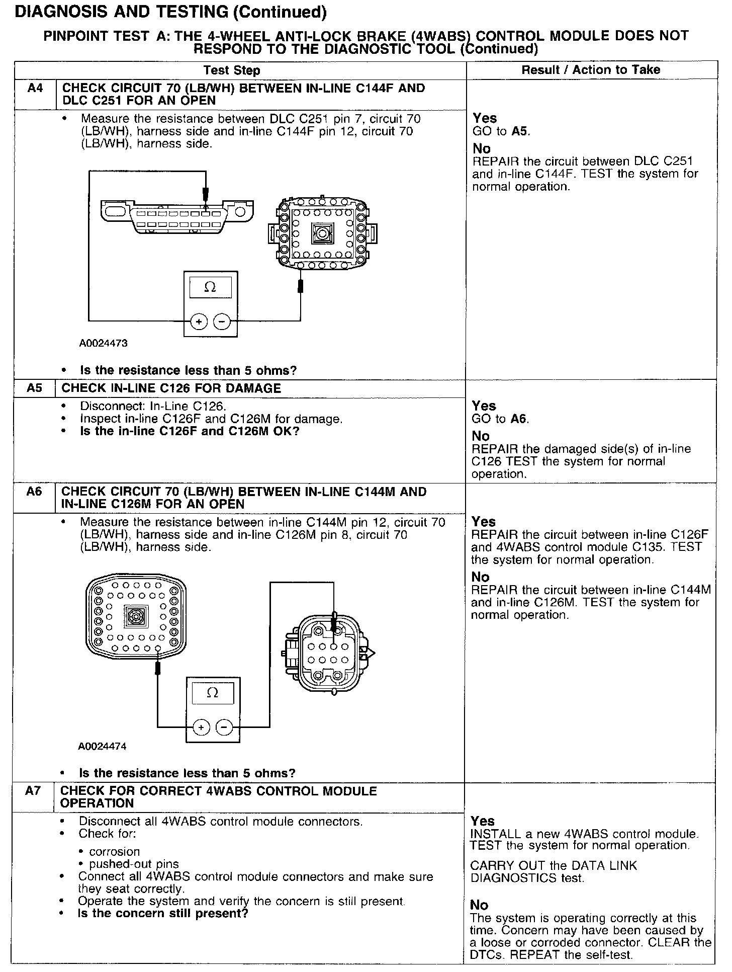PINPOINT TEST A: THE 4-WHEEL ANTI-LOCK BRAKE (4WABS) CONTROL MODULE DOES NOT RESPOND TO THE DIAGNOSTIC TOOL