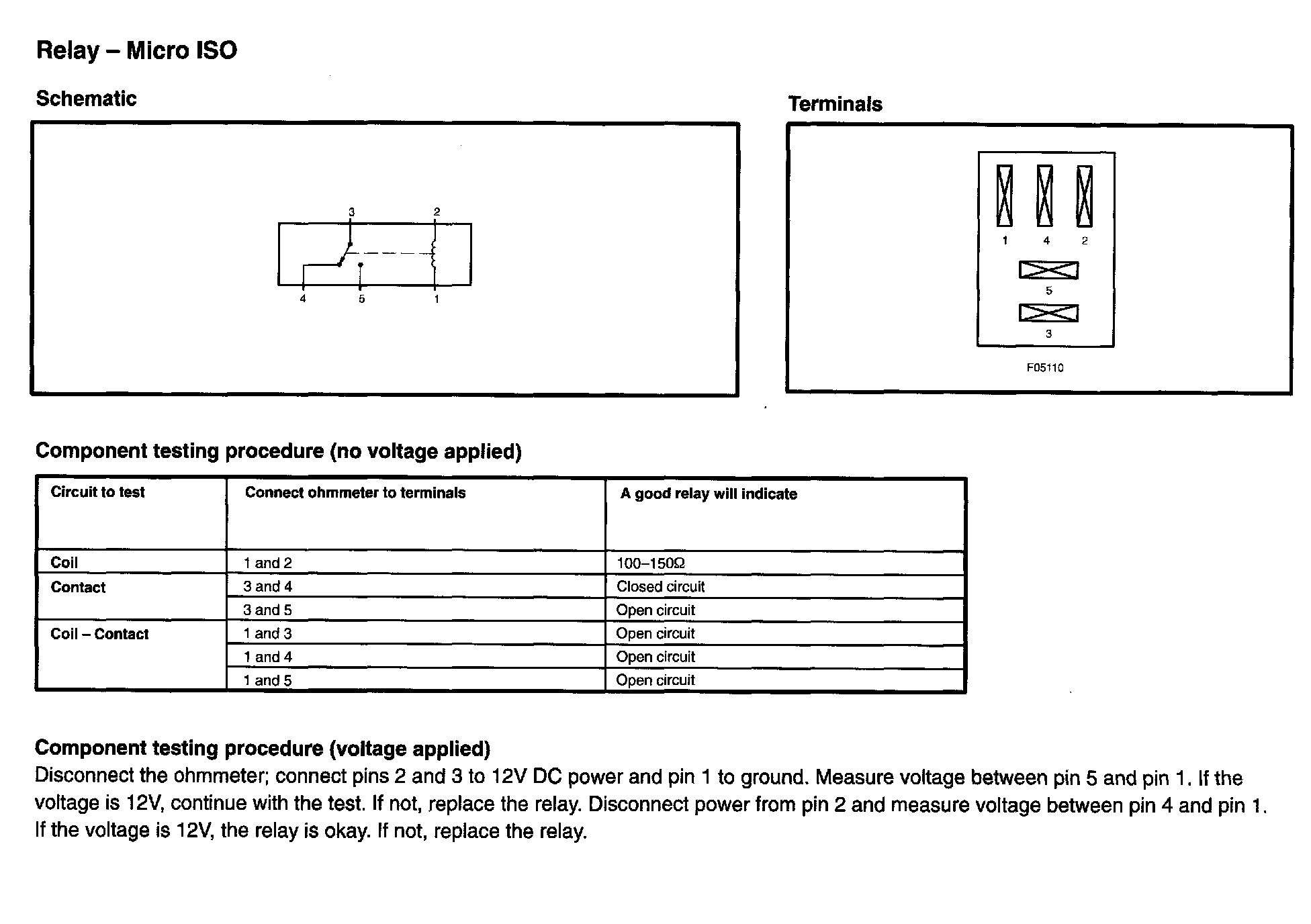 Main Relay (Computer/Fuel System): Testing and Inspection