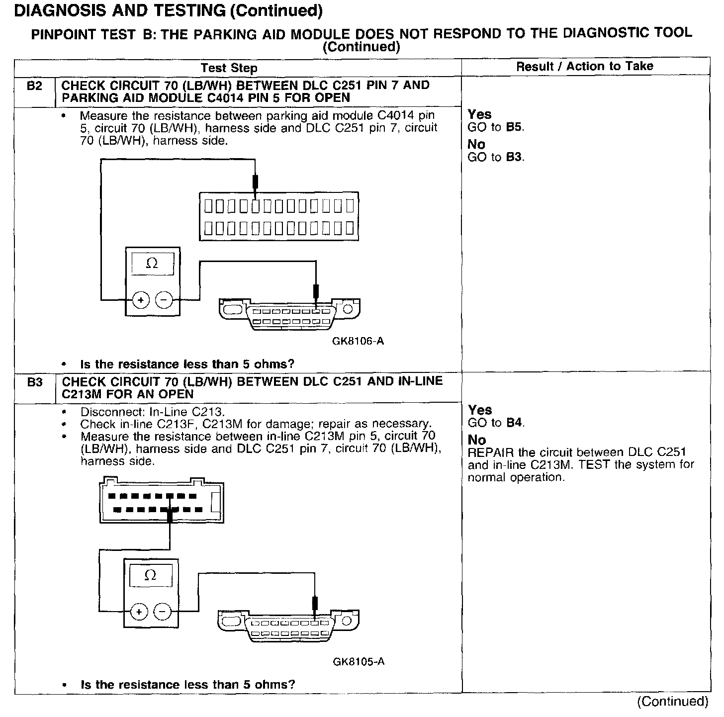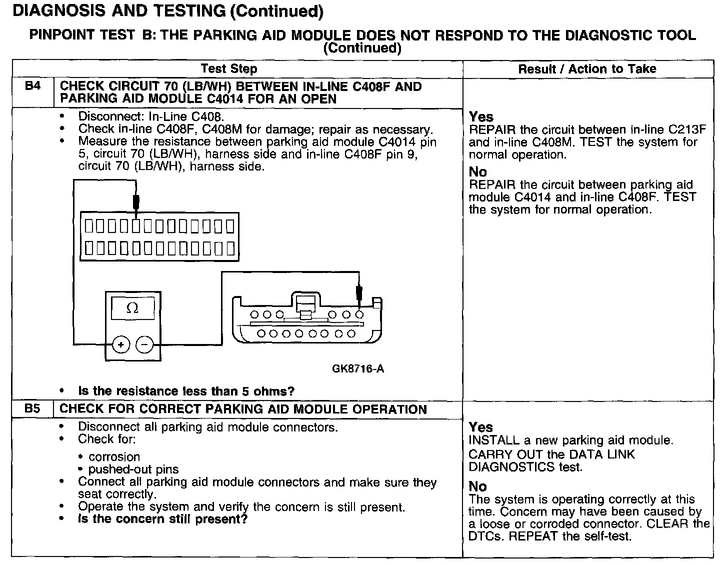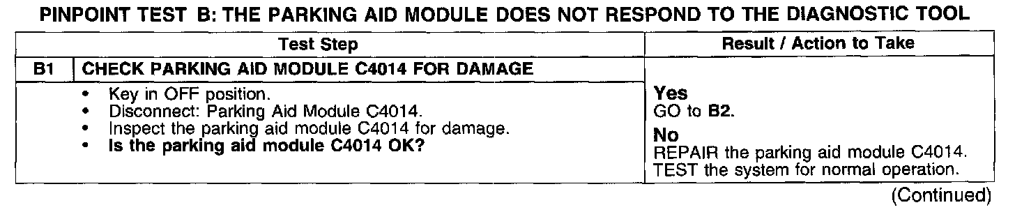 PINPOINT TEST B: THE PARKING AID MODULE DOES NOT RESPOND TO THE DIAGNOSTIC TOOL