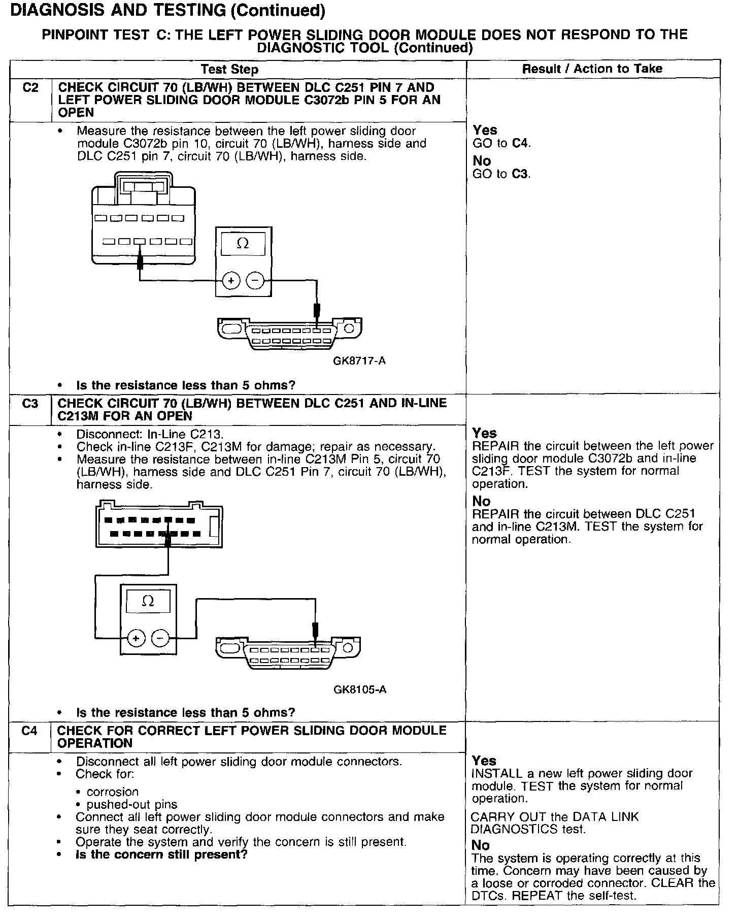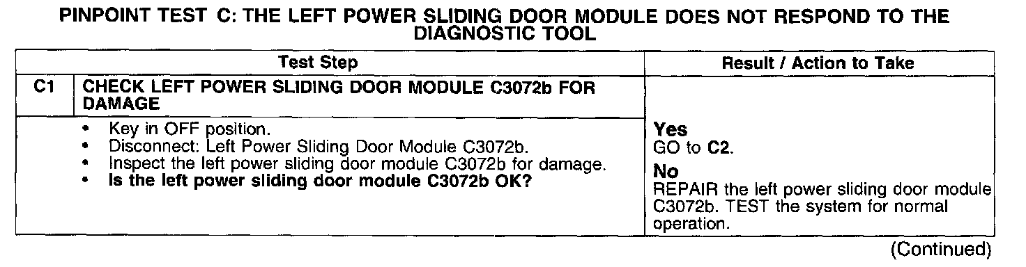 PINPOINT TEST C: THE LEFT POWER SLIDING DOOR MODULE DOES NOT RESPOND TO THE DIAGNOSTIC TOOL