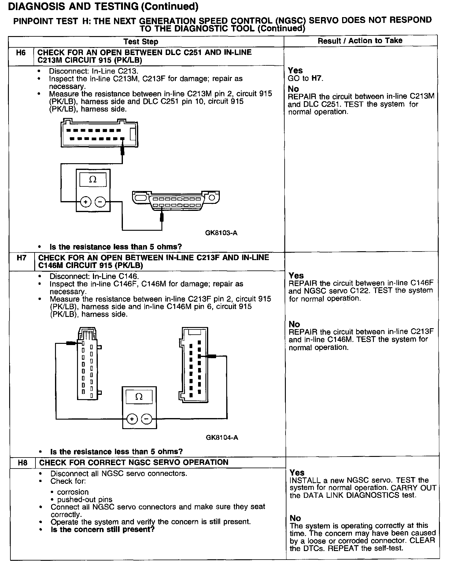 PINPOINT TEST H: THE NEXT GENERATION SPEED CONTROL (NGSC) SERVO DOES NOT RESPOND TO THE DIAGNOSTIC TOOL