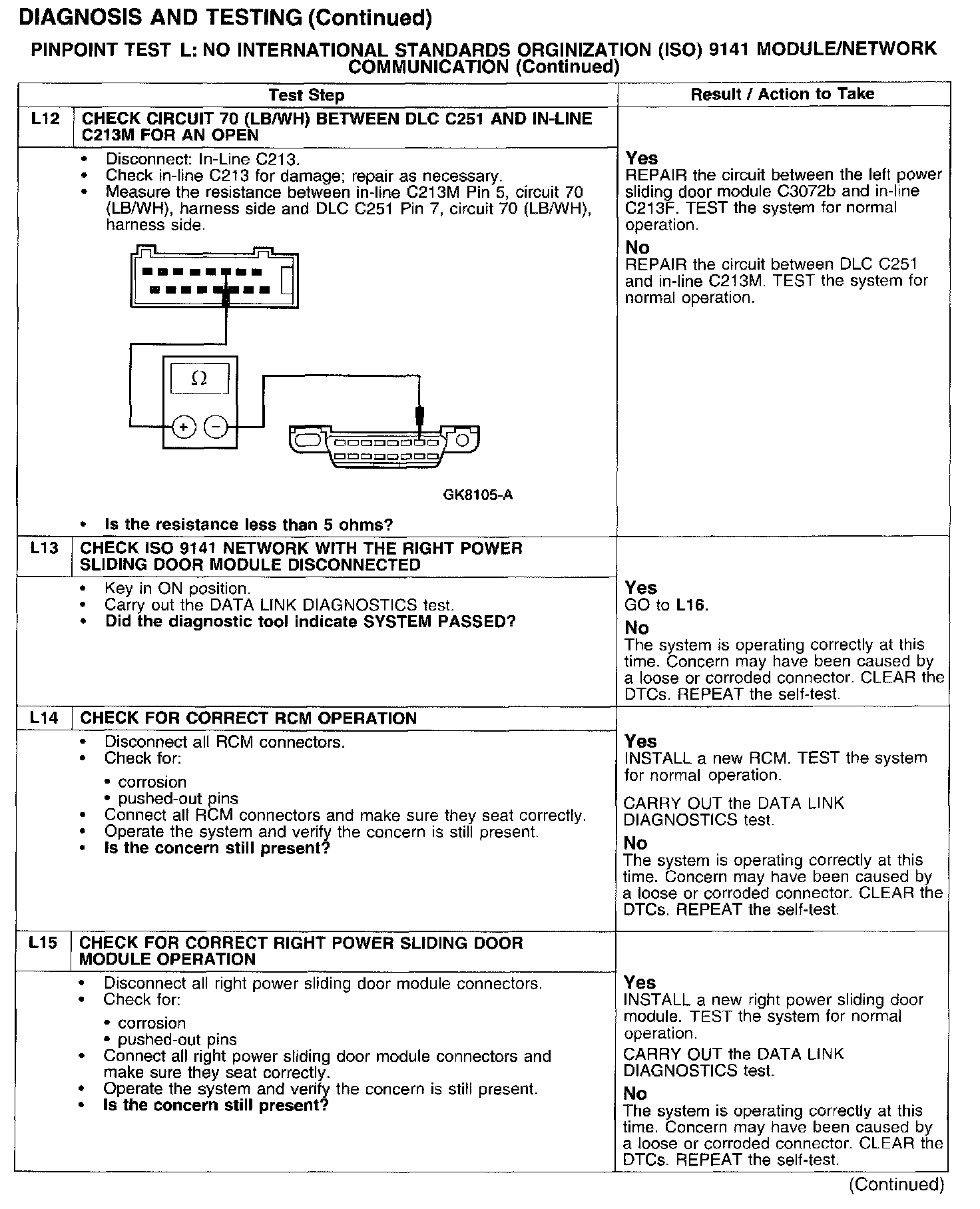 PINPOINT TEST L: NO INTERNATIONAL STANDARDS ORGANIZATION (ISO) 9141 MODULE/NETWORK COMMUNICATION