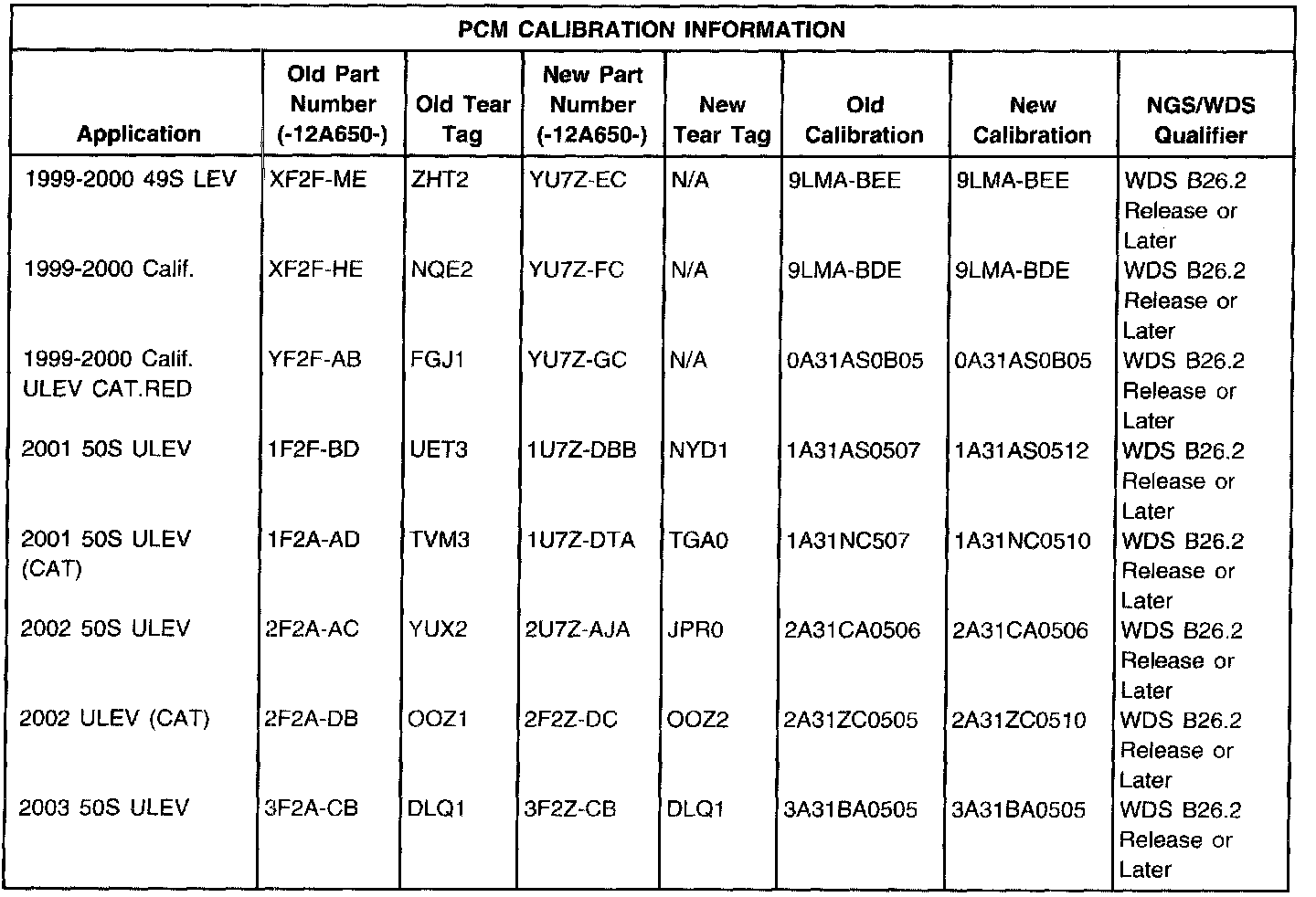 2. (ALL 1999-2003). Reprogram the PCM (Powertrain Control Module) with the latest calibration, WDS B26.2 release or later. Do not replace the PCM. Reset the keep alive memory.