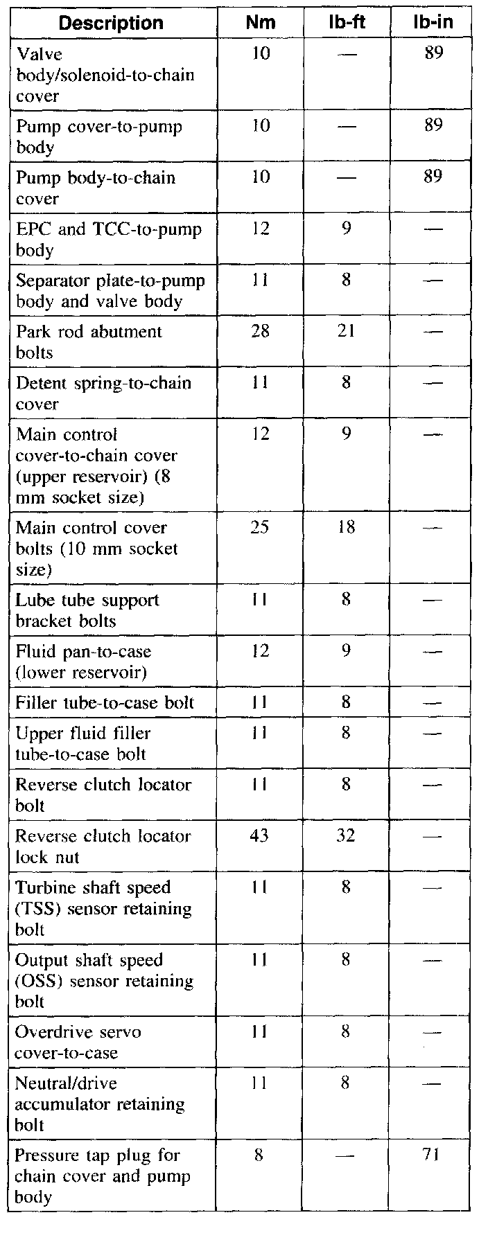 Torque Specifications