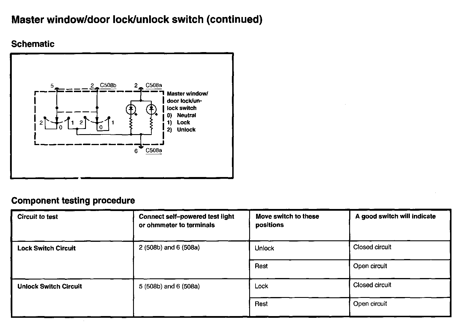 Master Window/Door Lock/Unlock Switch