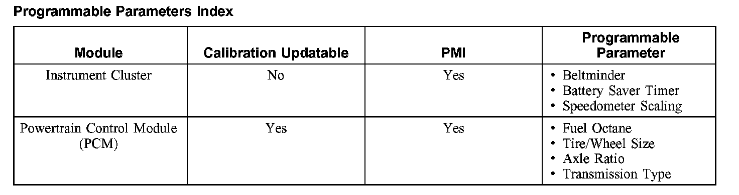 Programmable Parametes Index: