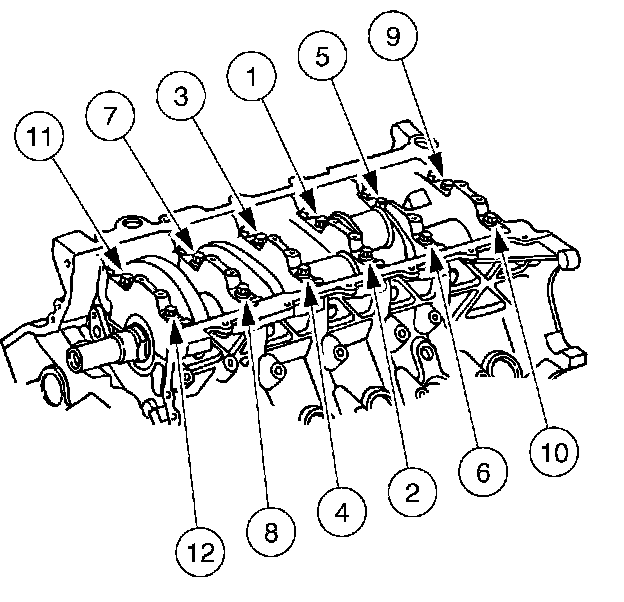 Tighten fasteners 1 through 12 in two stages, in the sequence shown.