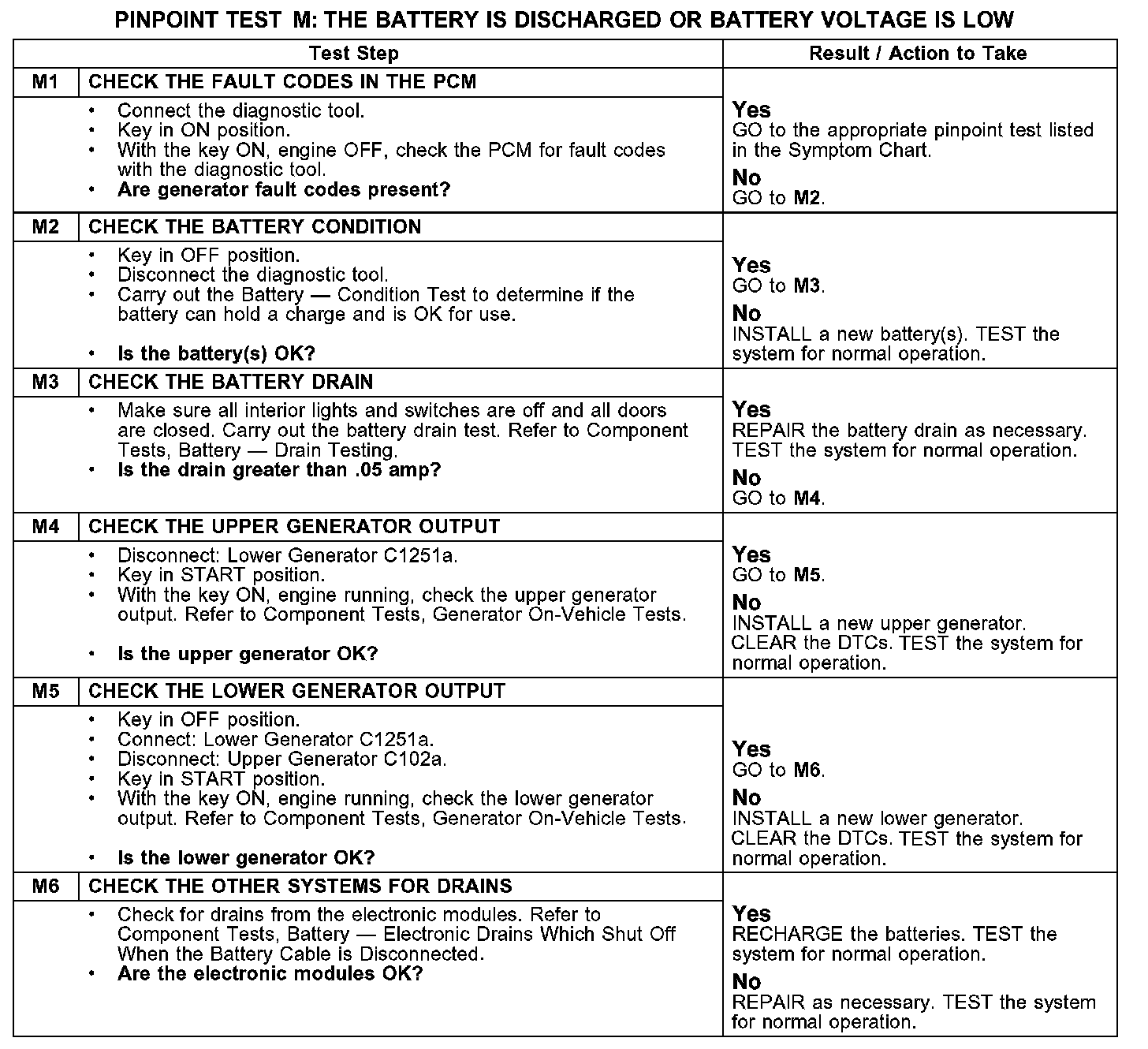 PINPOINT TEST M: THE BATTERY IS DISCHARGED OR BATTERY VOLTAGE IS LOW
