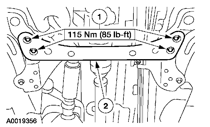 17. NOTE: Lower the rear of the engine to allow the subframe to clear the companion flange on the transfer case.