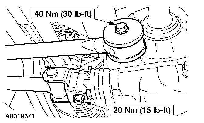 18. CAUTION: Do not allow the rear subframe bolts to come out of the lower control arm bushing.