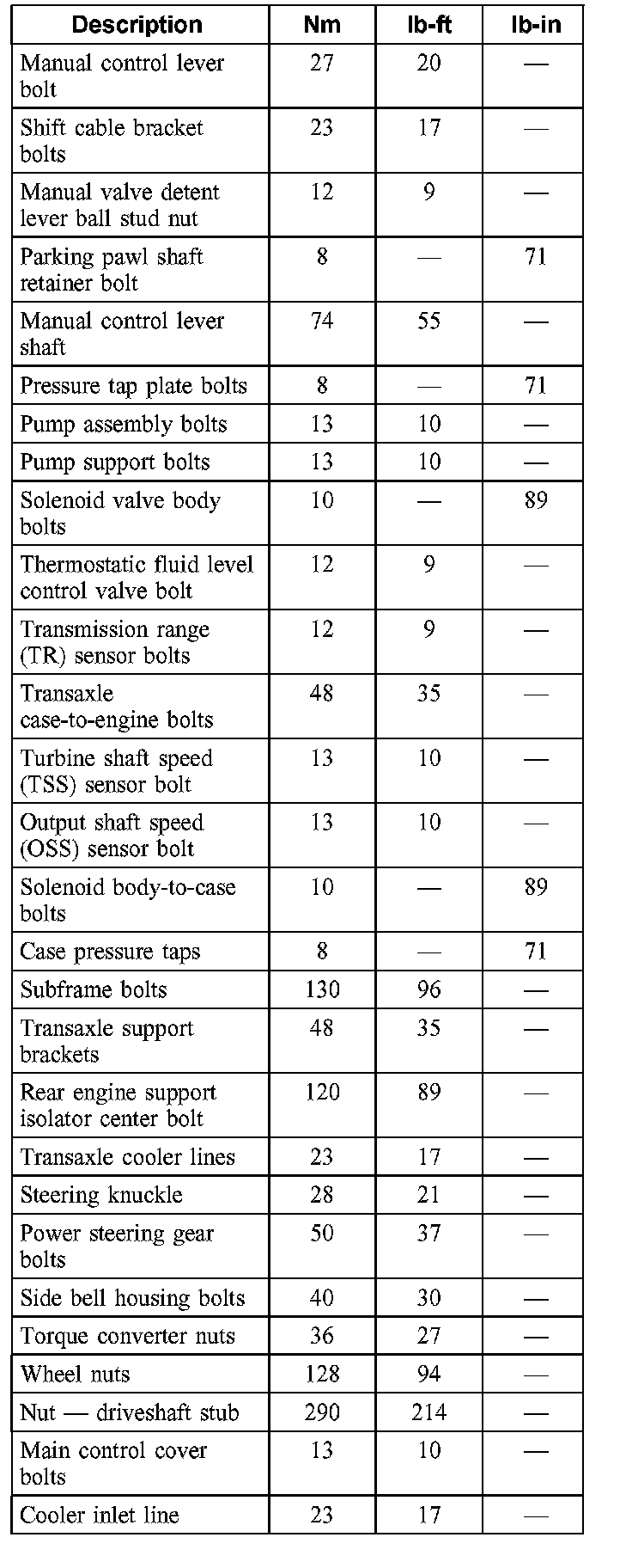 Torque Specifications