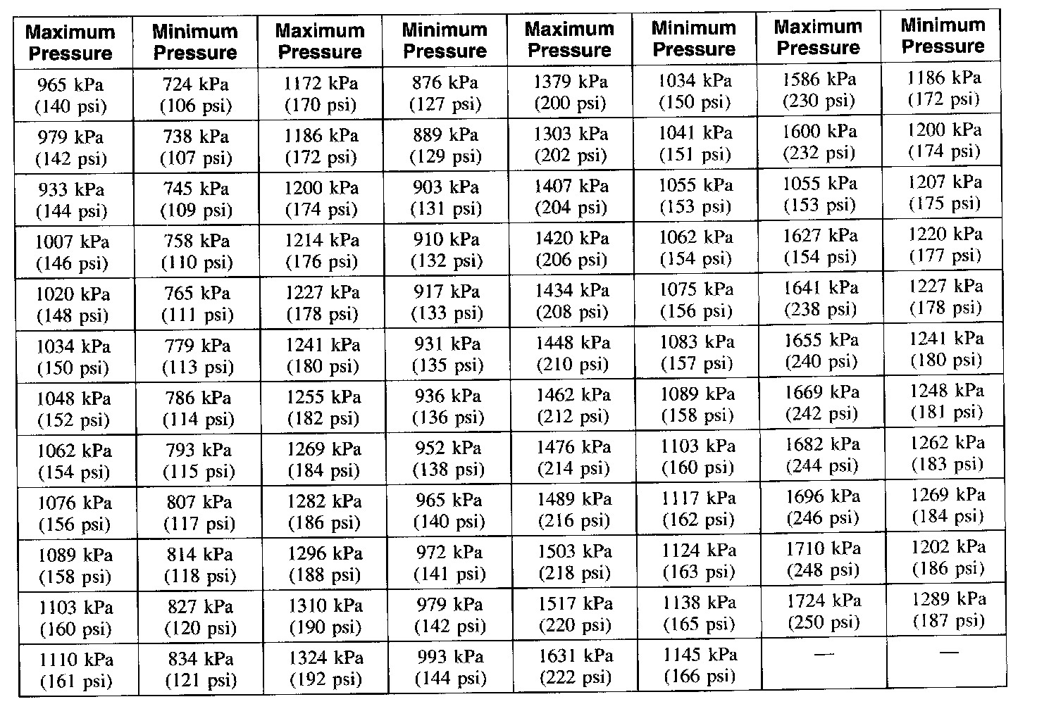Use the Compression Pressure Limit Chart when checking cylinder compression so that the lowest reading is at least 75 percent of the highest reading.