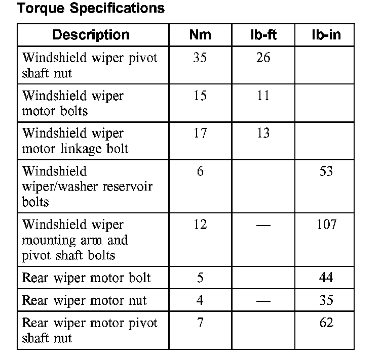 Torque Specifications