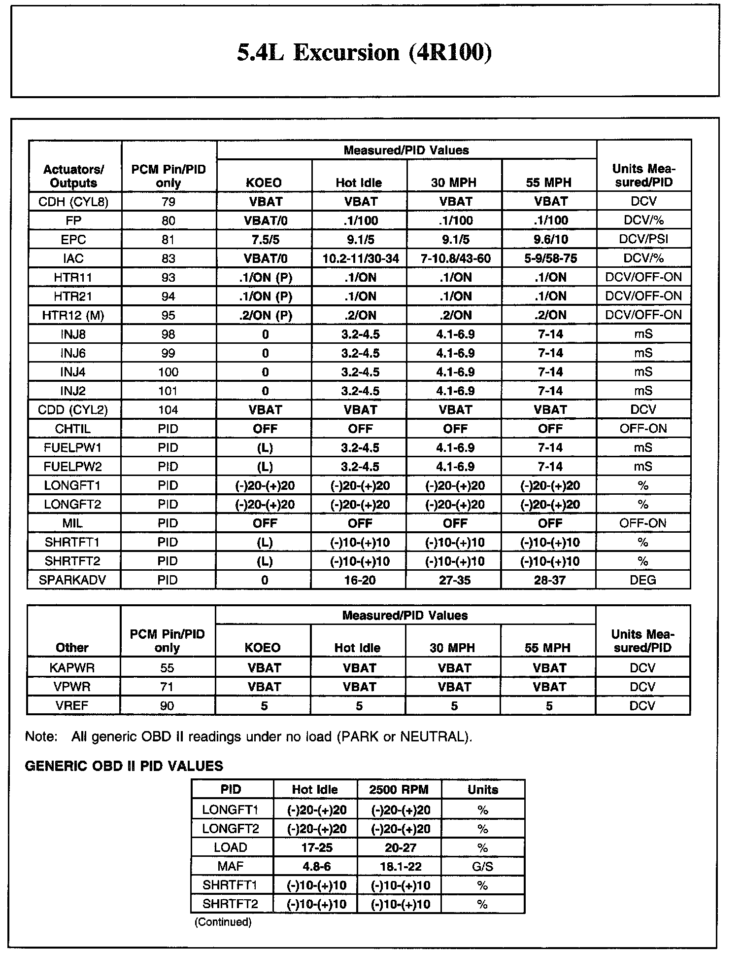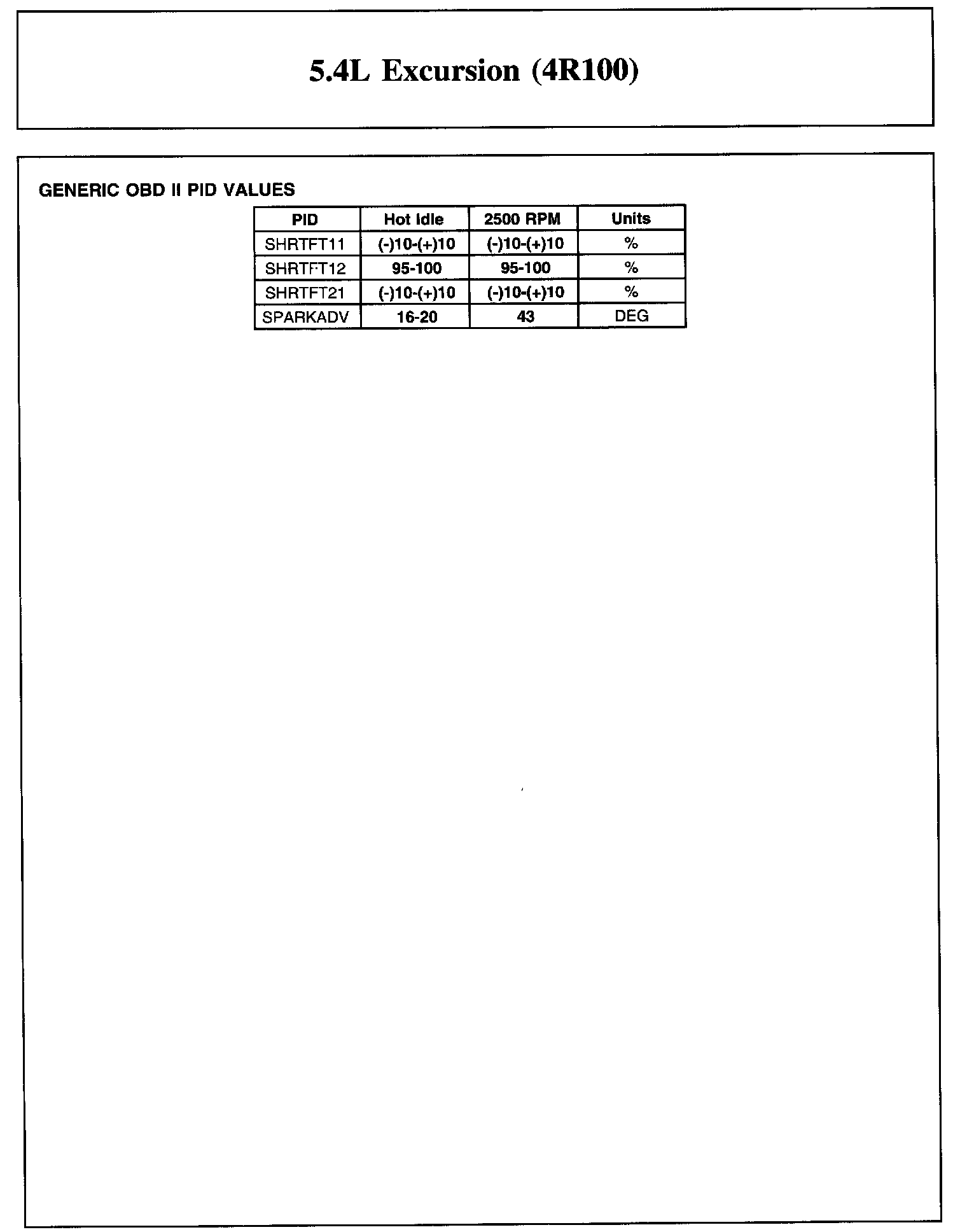 The Typical Diagnostic Reference Value Charts do not display fault PIDs. These are PIDs which indicate a hard fault with the circuit. They display a value of "YES" or "NO" and are PIDs ending with an "F".