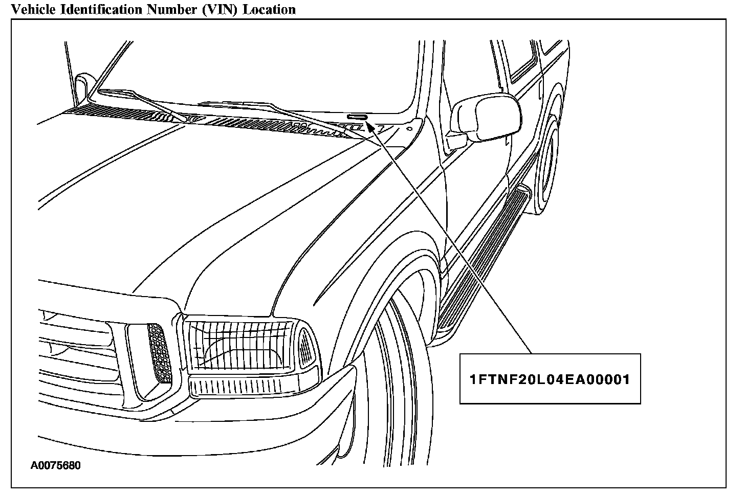 The vehicle identification number (VIN) is a 17-digit combination of letters and numbers. The VIN is stamped on a metal tab riveted to the instrument panel, top upper left of the dash. The VIN number is also found on the vehicle certification (VC) label.