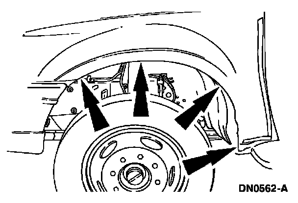 7. Remove the bolts securing the lower rear of the front fender.