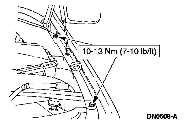 8. Remove the fender-to-radiator grille opening support retaining bolts.