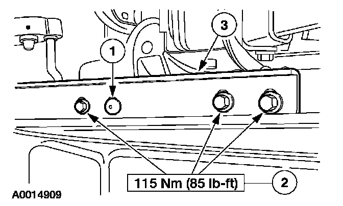 3. CAUTION: New shear bolts with the same part number must be installed. Do not use fasteners of lesser quality or substitute design. Torque values must be used as specified during installation to ensure correct retention of the trailer hitch.