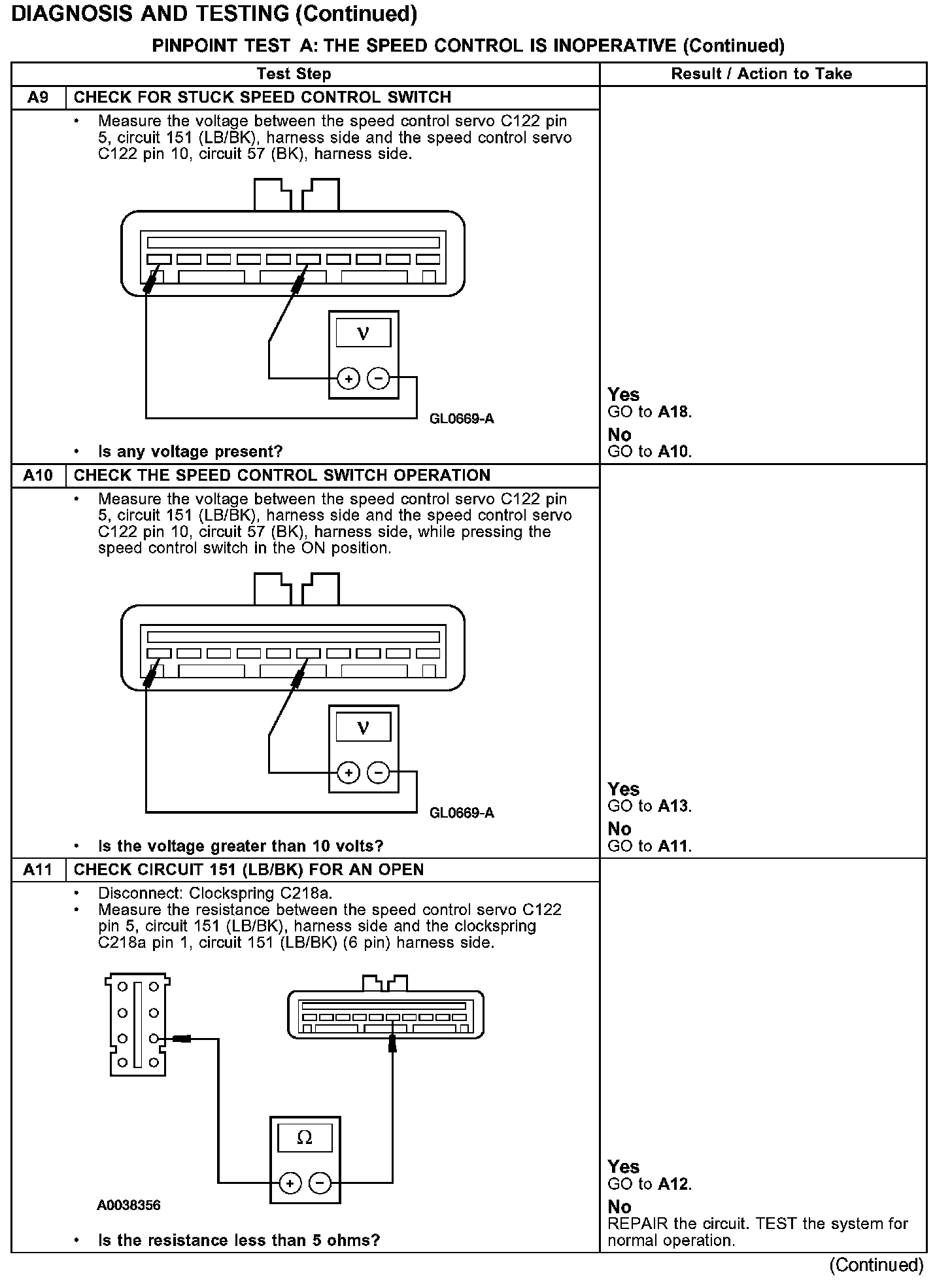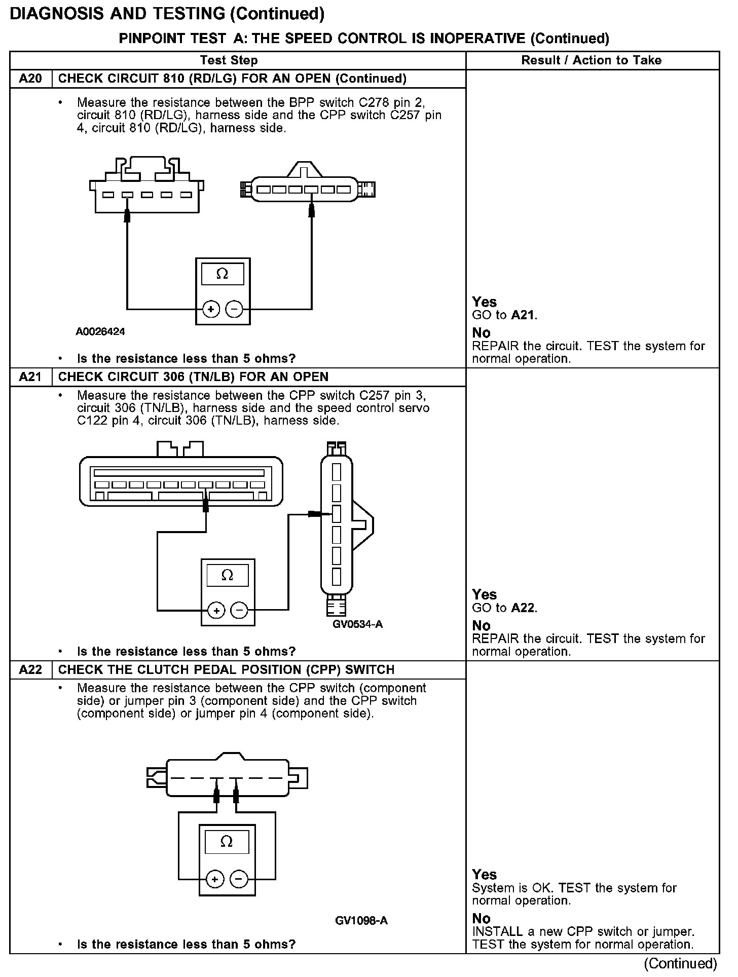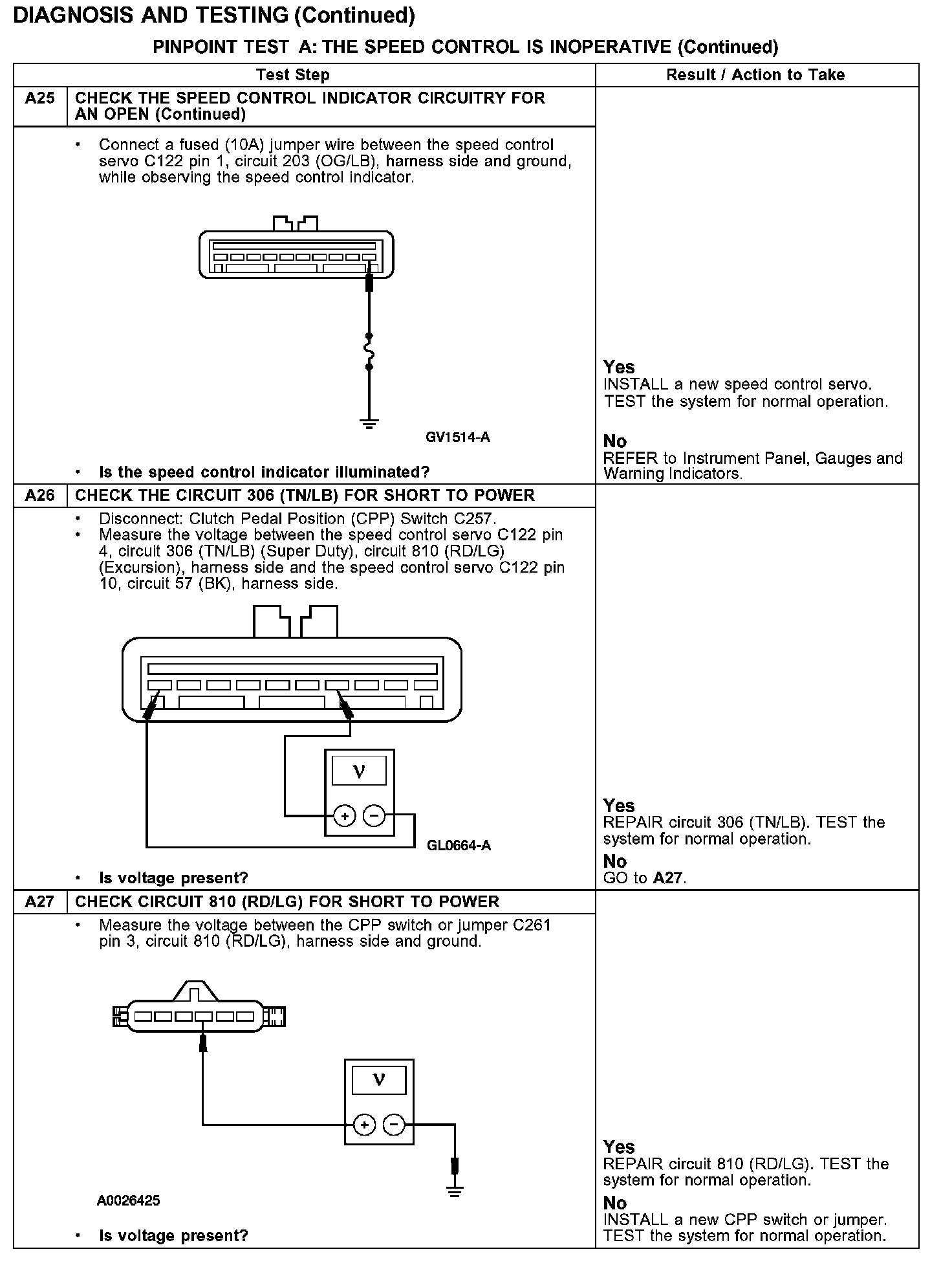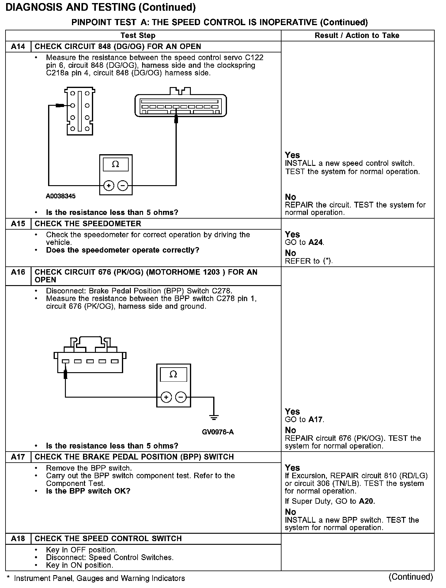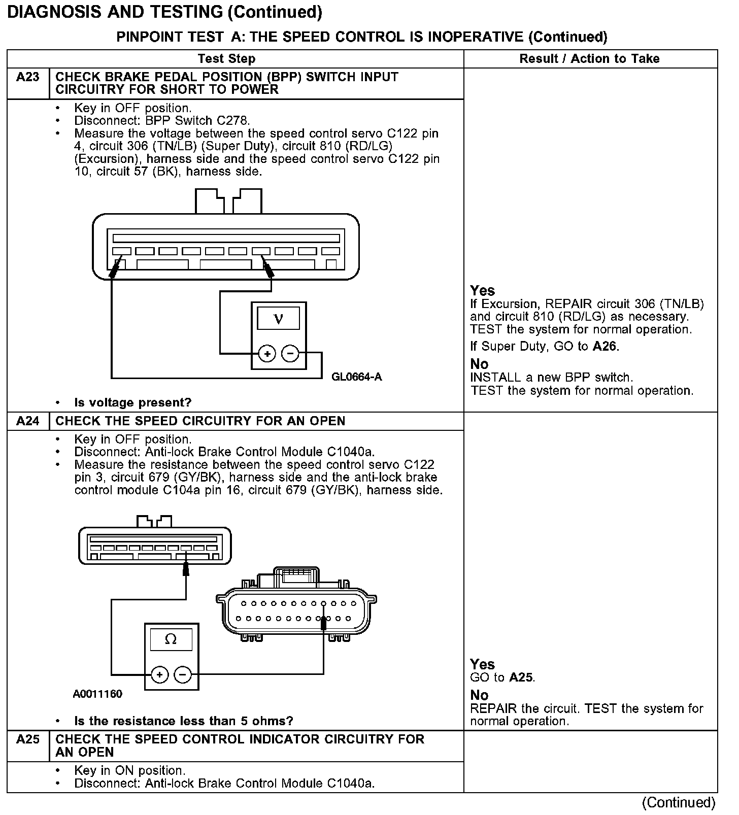 PINPOINT TEST A: THE SPEED CONTROL IS INOPERATIVE